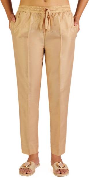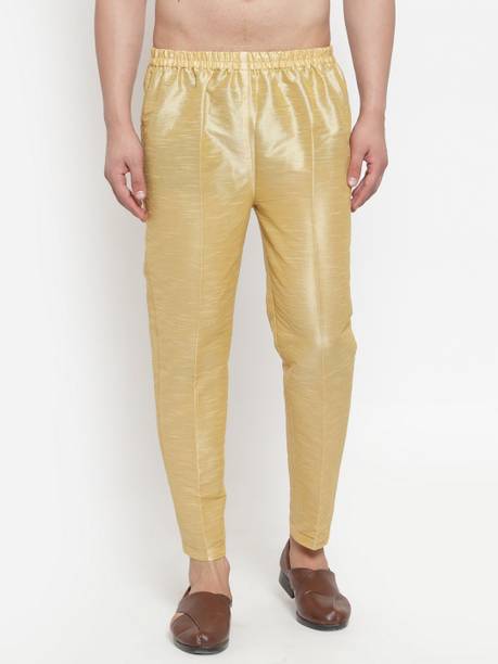 Look your best with gold pants available online. These sleek looking trousers and bottoms go well with all types of casual wear, western attires, and traditional garments. You can pair them up with crop tops, shirts, short kurtas, anarkalis, tees, salwars, and more. You can go for a regular fit, tapered, slim fit, striped, skinny fit, relaxed fit, etc. Check out chic and comfortable designs such as casual trousers, track pants, capris, chinos, cigarette trousers, and more. You can wear them to informal parties, get-togethers, dinner meets, dates, and semi-formal events. These are also ideal for religious festivals, office meetings, and marriages. Available for men, women, boys, and girls, you can get these latest gold pants in matte shades, glimmering patterns, pleated hems, and many other styles. Check out pants with added pockets to help you carry your phone, earphones, sanitisers, etc. You can also look for pants with comfortable closure patterns like fly zippers, buttons, and elastic side zip. Find these gold pants collections in cosy and breathable fabrics like pure linen, cotton, hosiery, cambric, jute, crepe-cotton blend, viscose, rayon, and more. Some popular brands to check out are Marks & Spencer, POPWINGS, EPILOG, Global Desi, and Hitashi Fashion. The information you are reading has been last updated on 17-Jan-26.