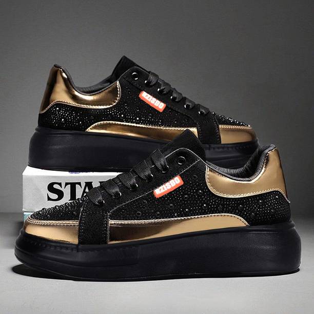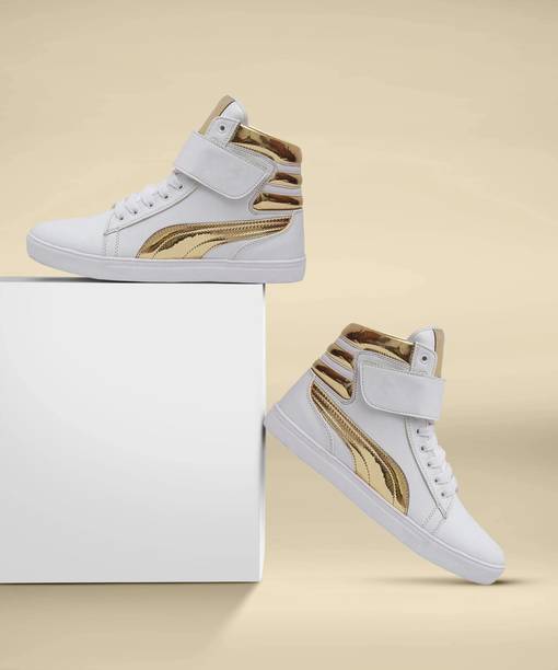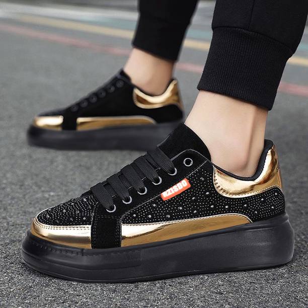 Dribble or kick the ball with some flair and style, the next time you play a game of soccer or basketball. How? By wearing a stylish pair of gold shoes. These shoes, when worn alongside a pair of shorts and a T-shirt would make you look smart and fashionable. You can pick from a range of gold shoes for men online from your favorite online shopping site. You can pay for the same by choosing from any of the payment options that are available on the shopping site and have them delivered to your doorstep. Most of these shoes are made from synthetic leather and are designed with the addition of complementary colors such as black, white and beige.