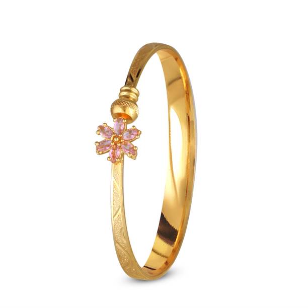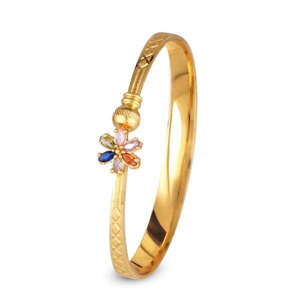 Other popular types of single gold bangles also include stone bangles. These bangles boast a frame of gold. This gold case is then fitted with stones of various shades and sizes to complete a reflective and elegant piece of jewellery.