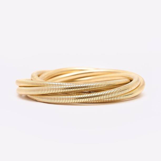Gold single bangles are just as the name suggests. They are made of gold or other materials which are then coated with gold. These bangles generally come in sets, ideally, sets of 4 bangles. You can find traditional gold bangle designs along with more modern designs. These different designs in return, can complement all types of outfits and looks.