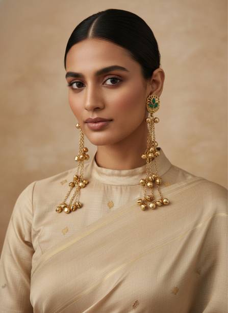 You can find long earrings that even come with bells at the bottom. The bells will make a mesmerizing sound every time you move around. You can pair these earrings with ethnic wear, such as kurtis, sarees, lehenga, anarkali etc.
