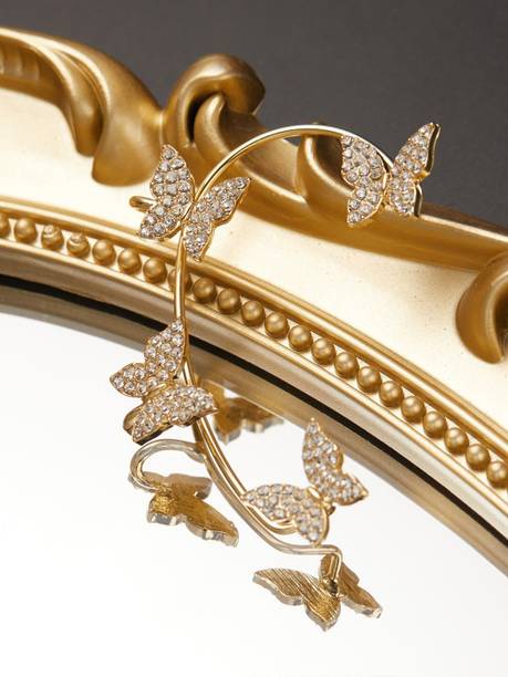 Gold stone earrings not only look good, but also add a touch of sophistication to your entire look. You can find small earrings, studs, and even long options. So, based on your outfit and preference, you can pick and choose from a variety of available options. And, some of the brands of earrings that you can find online are Divastri, Chemistry, Sukkhi, Yellow Chimes, and much more.