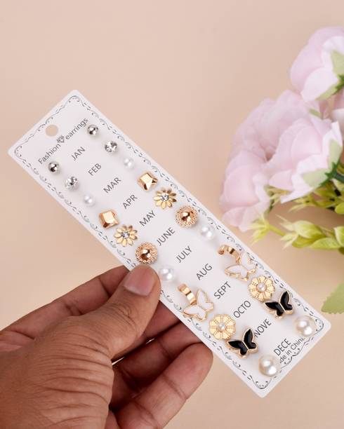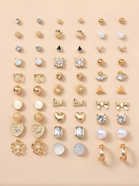 Gold stud earrings are an accessory that you must absolutely have in your jewellery collection. They are appropriate for an extravagant party, and can be worn to modest business gatherings. They are lovely fashion accessories that are always in style. Explore a variety of options available online and pick as per your requirements. If you want to wear something to work, stud earrings are excellent. They are a timeless and an understated fashion accessory that works with every ensemble because of their elegance and simplicity. They are available in gemstones, like amethyst, blue sapphire, black diamond, emerald, jade, and more. They are also ideal for regular wear and make a terrific gift. You can research numerous themes, like a minimum luxury, diamond divas, bold ethnic stud earrings, and more. Check out brands, such as 350 Jewellery, 3S Happiness Days, 18 Fashion Street, 9blings, AAA Exports, etc., that offer gold earrings for women online. You can check product descriptions, reviews, and ratings to make your choice accordingly. Select gold stud earrings with crystals, since they are fashionable and popular among most women. Purchase your favourite gold earrings online by placing your order, and glam up your appearance wherever you go. Price list last updated on 26-Oct-25.