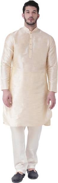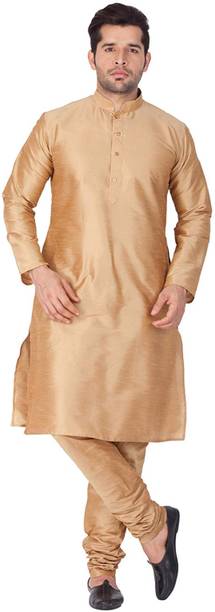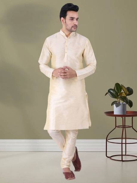 The stylish golden kurta pajama is a refreshing change from the blue and white combinations often worn by men. Whether it's a wedding, engagement ceremony, or any other festive occasion, you can never go wrong with the amazing golden kurta pajamas. A classic silk kurta with gold pants or churidar is the right look for a traditional function. The simple printed kurtas are classic options, but a golden kurta set takes the ethnic wear to another level. A maroon and gold designer vest with two Besom front pockets and a Nehru collar in silk kurta gives you a rich and distinctive look for formal gatherings. You can also opt for a plain cotton jacket that adds to the ethnic attire. An embroidered jacket adds the right amount of oomph to turn your simple golden kurta into festive wear that you can wear to weddings, festivities, or other traditional occasions. You can shop for these amazing ethnic wear from different brands such as Hangup, AAGHA, Jompers, BENSTOKE, SOJANYA, and more. Browse online and check out the latest golden kurta pajama collection online. You can choose from various patterns, designs, sizes, and textures based on your preferences and place your order online. The information you are reading has been last updated on 14-Feb-26.