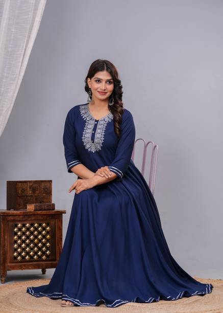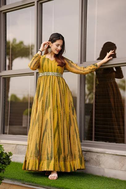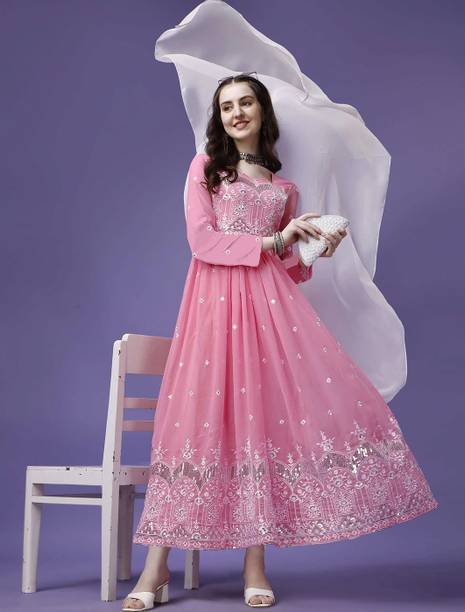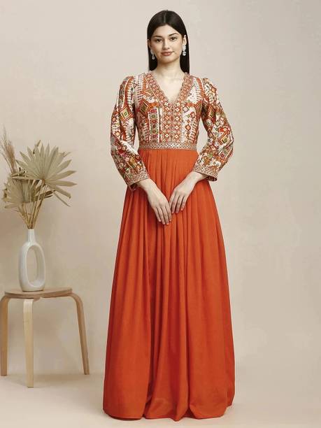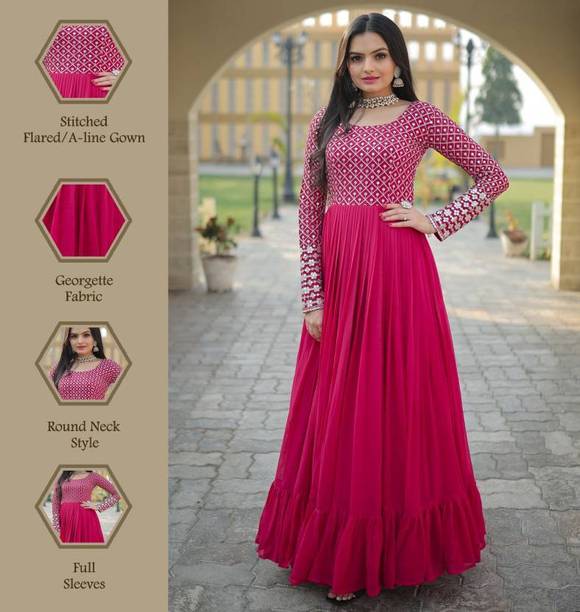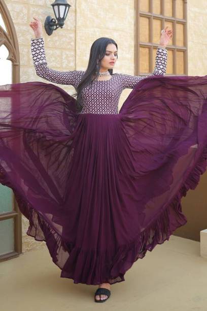 Your day of engagement is a beautiful moment that you shall cherish your entire life. Sweeten your experience with a gorgeous gown for (your) engagement. Adorn yourself like a princess in traditional gowns and be in the limelight on both of your special days. You can buy these in comfortable fabrics, beautiful patterns, and astounding shades. Choose from beautiful fabrics like net, silk blend, pure georgette, crepe, cotton silk, etc. These ensure that you get a perfect fit and make you feel comfortable. Wear your favourite latest gown for engagement in patterns from options like embroidered, embellished, self-designed, floral patterns, solid colours, and many other designs that look exquisite during your dream moment. You can opt for sleeves depending on your comfort and the seasons. Choose from a full sleeve, regular sleeve, sleeveless, three-fourth sleeve, and many other options. Complement your sleeves with beautiful bangles, charms, finger rings, etc. You can choose from emerald, golden, black, purple, silver, and many other vibrant colours. You can also opt for round necks, boat necks, and many more styles to choose your engagement wear. These Anarkali gowns for engagement are available with popular brands such as Woven Stack, ABODA, Hetva Creation, DOLVIA, and Urban Creation. The information you are reading has been last updated on 09-Oct-25.