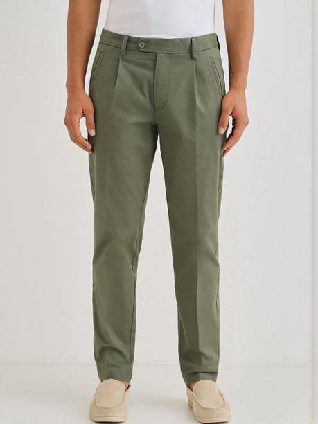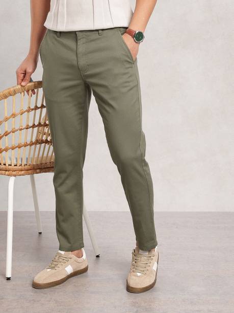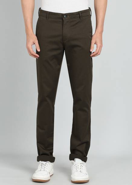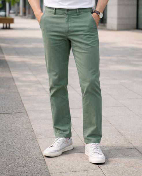 Green chinos (for) men are casual trousers with a super comfortable feel. The smart design is enhanced with the presence of a couple of side pockets and two integrated pockets on the backside. They are made using fabrics such as cotton linen blend, cotton Tencel blend, cotton-rayon blend, cotton lycra blend, organic cotton blend, etc. Extra light fabrics lend a wonderfully cooling effect to the pants that one can wear for long hours. Choose chinos from fits such as slim, regular, skinny, relaxed, tapered, etc., available online. Pair them with T-shirts for a smart casual look, checkered shirts for a semi-casual look or formal shirts tucked in for a sharp and formal look. They can be coupled with sneakers, sports shoes, sandals, etc., for a great look at college, work, outings with friends, shopping, etc. The green chinos (for) men are accessible in variable themes such as new basics, nautical styles, comfort fit, pocket detail, etc. Buy the latest green chinos (for) men (in) new styles from brands such as Van Heusen Sport, Flying Machine, U.S. POLO ASSN., Louis Philippe Sport, Byford by Pantaloons, etc. Order the appropriate size online with suitable offer options at the best prices from the comfort of your home for convenient doorstep delivery. The information you are reading has been last updated on 14-Feb-26.