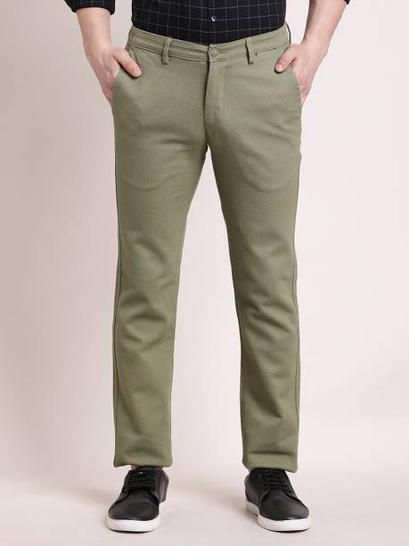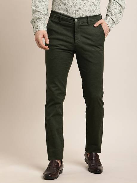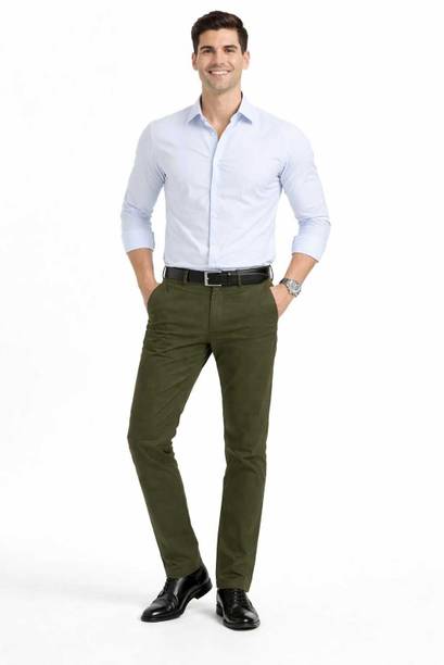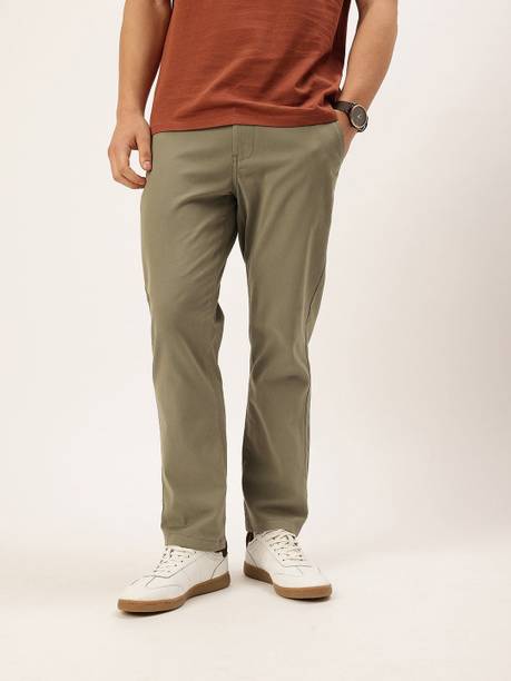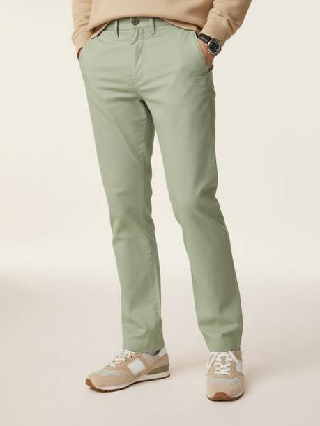 Green chinos (for) men are casual trousers with a super comfortable feel. The smart design is enhanced with the presence of a couple of side pockets and two integrated pockets on the backside. They are made using fabrics such as cotton linen blend, cotton Tencel blend, cotton-rayon blend, cotton lycra blend, organic cotton blend, etc. Extra light fabrics lend a wonderfully cooling effect to the pants that one can wear for long hours. Choose chinos from fits such as slim, regular, skinny, relaxed, tapered, etc., available online. Pair them with T-shirts for a smart casual look, checkered shirts for a semi-casual look or formal shirts tucked in for a sharp and formal look. They can be coupled with sneakers, sports shoes, sandals, etc., for a great look at college, work, outings with friends, shopping, etc. The green chinos (for) men are accessible in variable themes such as new basics, nautical styles, comfort fit, pocket detail, etc. Buy the latest green chinos (for) men (in) new styles from brands such as Van Heusen Sport, Flying Machine, U.S. POLO ASSN., Louis Philippe Sport, Byford by Pantaloons, etc. Order the appropriate size online with suitable offer options at the best prices from the comfort of your home for convenient doorstep delivery. The information you are reading has been last updated on 31-Mar-26.
