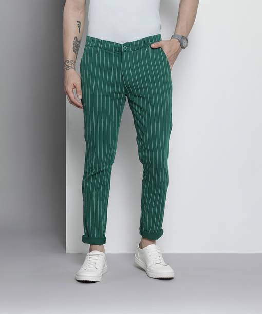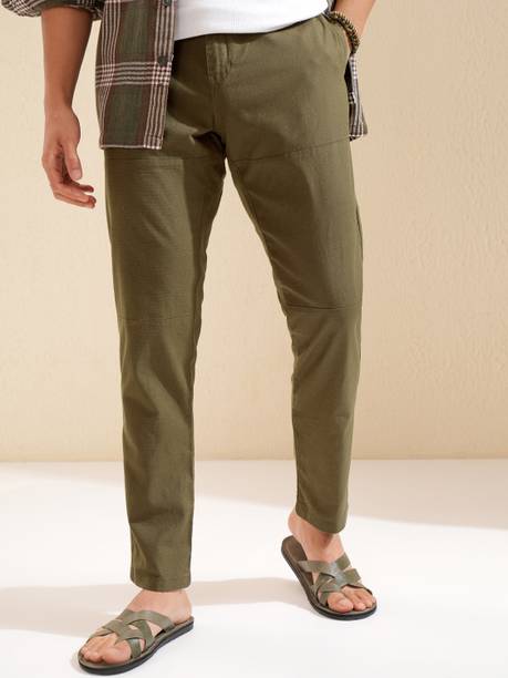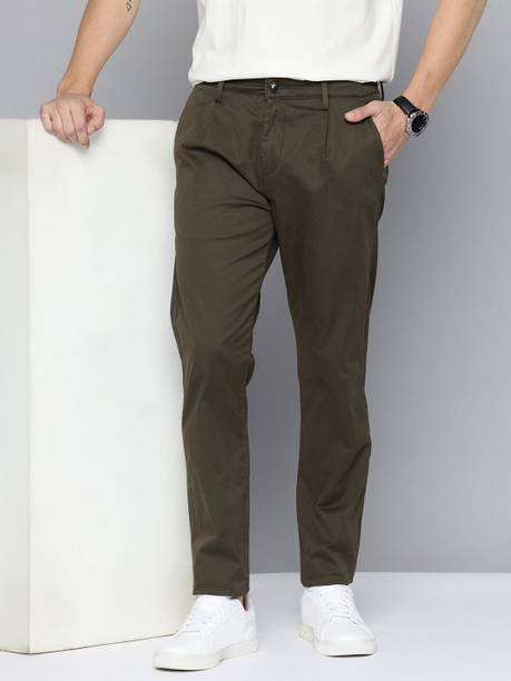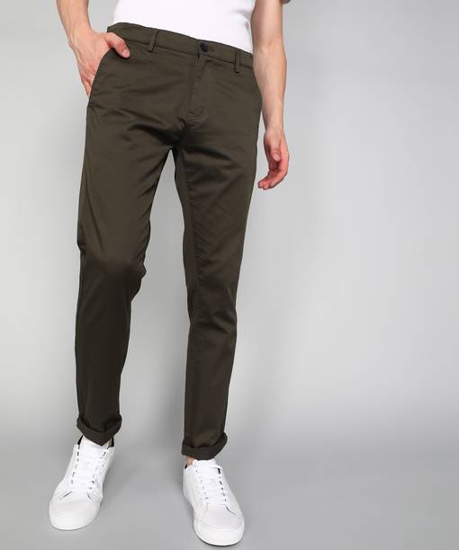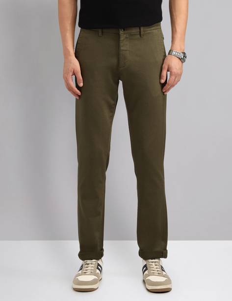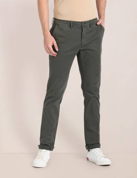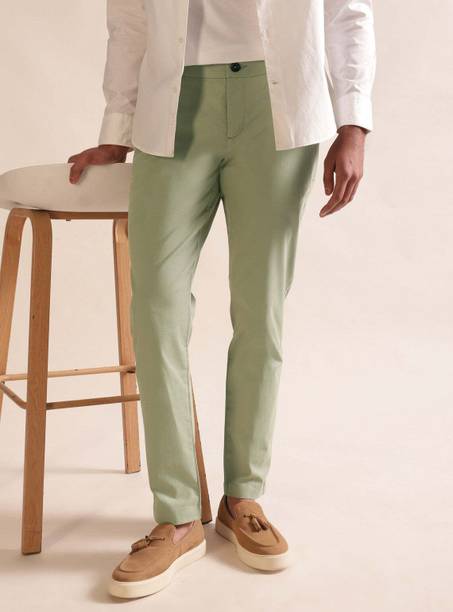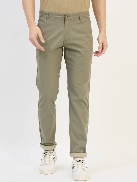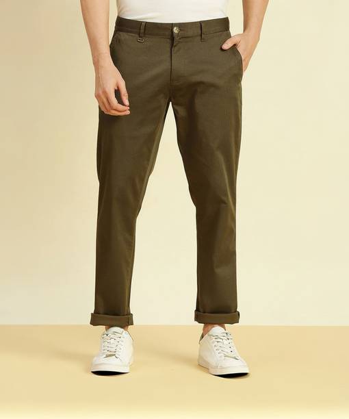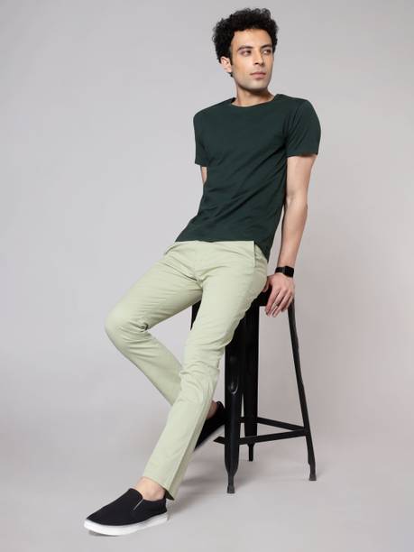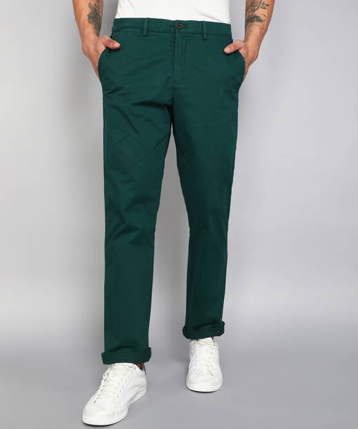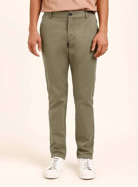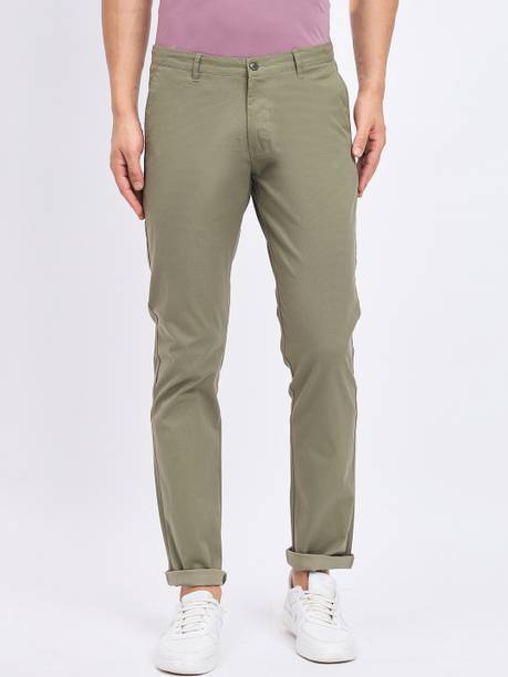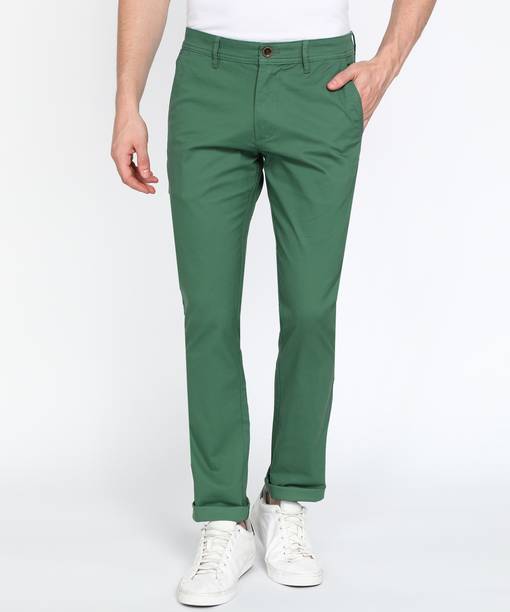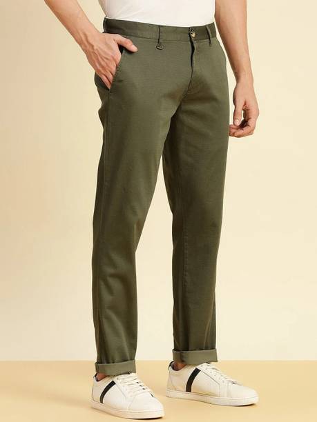 Green chinos (for) men are casual trousers with a super comfortable feel. The smart design is enhanced with the presence of a couple of side pockets and two integrated pockets on the backside. They are made using fabrics such as cotton linen blend, cotton Tencel blend, cotton-rayon blend, cotton lycra blend, organic cotton blend, etc. Extra light fabrics lend a wonderfully cooling effect to the pants that one can wear for long hours. Choose chinos from fits such as slim, regular, skinny, relaxed, tapered, etc., available online. Pair them with T-shirts for a smart casual look, checkered shirts for a semi-casual look or formal shirts tucked in for a sharp and formal look. They can be coupled with sneakers, sports shoes, sandals, etc., for a great look at college, work, outings with friends, shopping, etc. The green chinos (for) men are accessible in variable themes such as new basics, nautical styles, comfort fit, pocket detail, etc. Buy the latest green chinos (for) men (in) new styles from brands such as Van Heusen Sport, Flying Machine, U.S. POLO ASSN., Louis Philippe Sport, Byford by Pantaloons, etc. Order the appropriate size online with suitable offer options at the best prices from the comfort of your home for convenient doorstep delivery. The information you are reading has been last updated on 04-Oct-25.