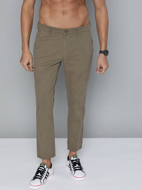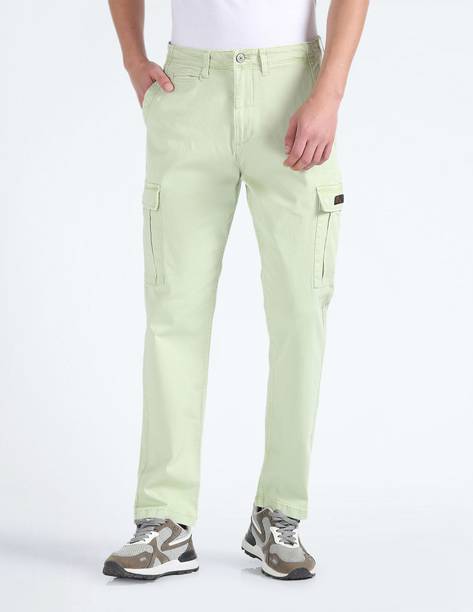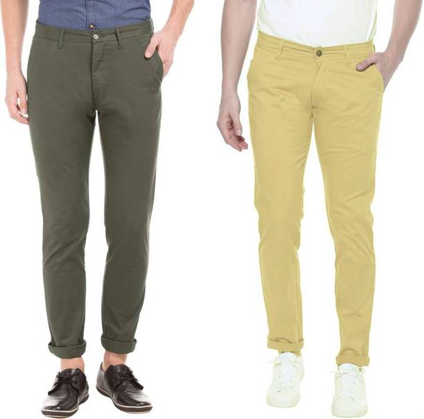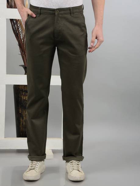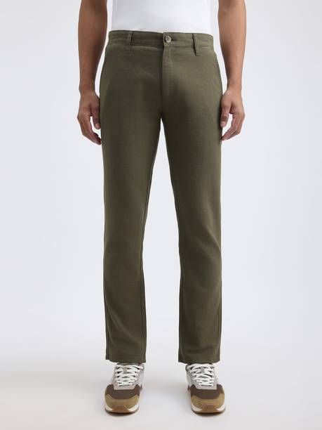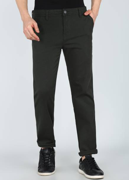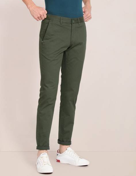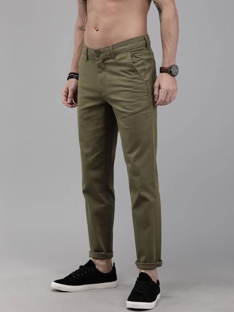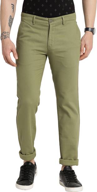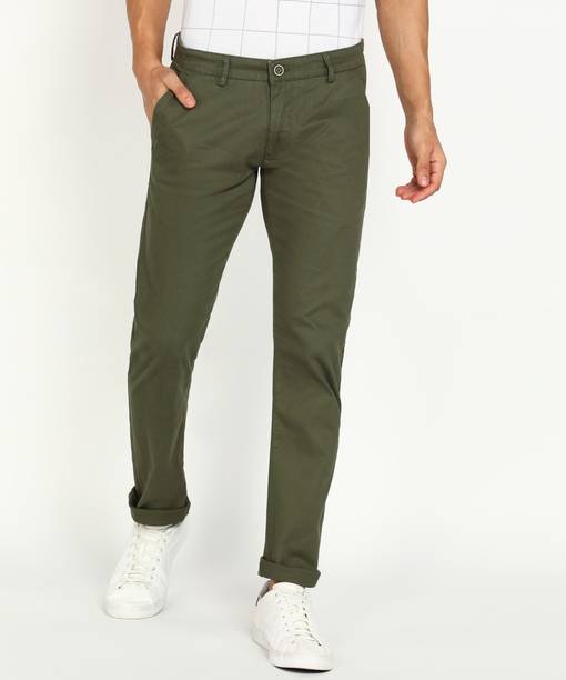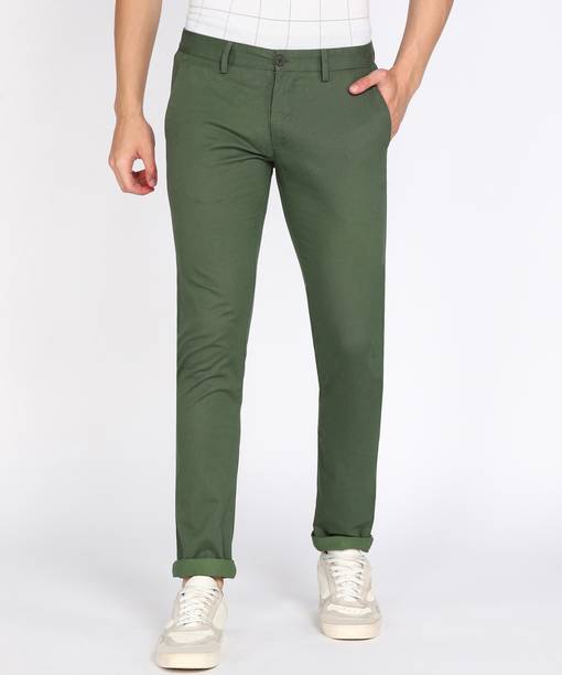 Green chinos (for) men are casual trousers with a super comfortable feel. The smart design is enhanced with the presence of a couple of side pockets and two integrated pockets on the backside. They are made using fabrics such as cotton linen blend, cotton Tencel blend, cotton-rayon blend, cotton lycra blend, organic cotton blend, etc. Extra light fabrics lend a wonderfully cooling effect to the pants that one can wear for long hours. Choose chinos from fits such as slim, regular, skinny, relaxed, tapered, etc., available online. Pair them with T-shirts for a smart casual look, checkered shirts for a semi-casual look or formal shirts tucked in for a sharp and formal look. They can be coupled with sneakers, sports shoes, sandals, etc., for a great look at college, work, outings with friends, shopping, etc. The green chinos (for) men are accessible in variable themes such as new basics, nautical styles, comfort fit, pocket detail, etc. Buy the latest green chinos (for) men (in) new styles from brands such as Van Heusen Sport, Flying Machine, U.S. POLO ASSN., Louis Philippe Sport, Byford by Pantaloons, etc. Order the appropriate size online with suitable offer options at the best prices from the comfort of your home for convenient doorstep delivery. The information you are reading has been last updated on 04-Oct-25.