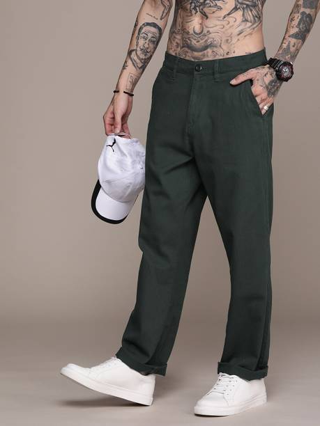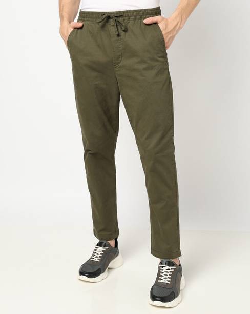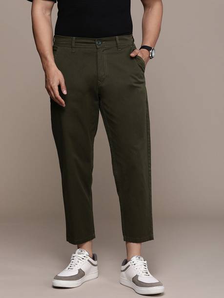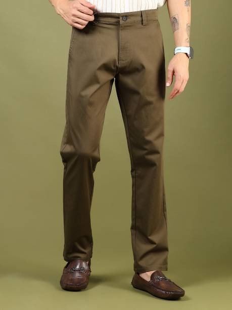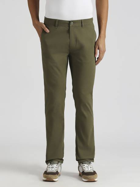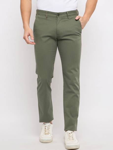 Green chinos (for) men are casual trousers with a super comfortable feel. The smart design is enhanced with the presence of a couple of side pockets and two integrated pockets on the backside. They are made using fabrics such as cotton linen blend, cotton Tencel blend, cotton-rayon blend, cotton lycra blend, organic cotton blend, etc. Extra light fabrics lend a wonderfully cooling effect to the pants that one can wear for long hours. Choose chinos from fits such as slim, regular, skinny, relaxed, tapered, etc., available online. Pair them with T-shirts for a smart casual look, checkered shirts for a semi-casual look or formal shirts tucked in for a sharp and formal look. They can be coupled with sneakers, sports shoes, sandals, etc., for a great look at college, work, outings with friends, shopping, etc. The green chinos (for) men are accessible in variable themes such as new basics, nautical styles, comfort fit, pocket detail, etc. Buy the latest green chinos (for) men (in) new styles from brands such as Van Heusen Sport, Flying Machine, U.S. POLO ASSN., Louis Philippe Sport, Byford by Pantaloons, etc. Order the appropriate size online with suitable offer options at the best prices from the comfort of your home for convenient doorstep delivery. The information you are reading has been last updated on 04-Oct-25.