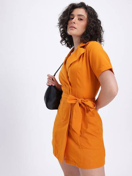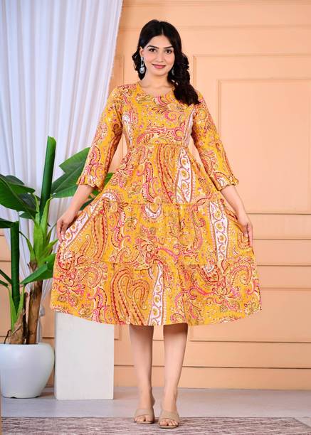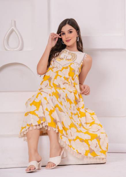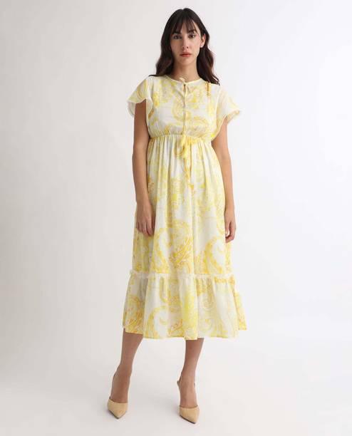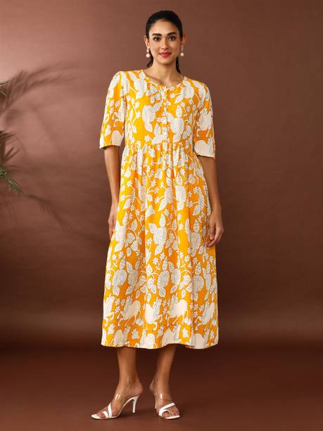 Shine bright in haldi dresses. These vibrant garments are perfect for all types of occasions like religious festivals, family events, formal occasions, brunch dates, casual outings, and more. All your options are available for traditional wear, Indo-western styles, and western looks. You can get the latest haldi dresses in designs like maxi dresses, bodycon, frocks, kurtas, high-lows, pleated, a-lines, long-shirts, etc. These beautiful attires are available in all sizes, and perfectly blend simplicity and style. Adorn yourself in attires made of comfortable fabrics like rayon, cotton, polyester, cotton silk, cotton lycra blend, poly cotton, lycra, georgette, and crepe. They feel soft on the skin and can make you stand out from the crowd. You can check out the wide collection of patterns like printed, colour block, textured, self-designed, striped, florals, geometric print, embellished print, etc. You can choose your sleeve length according to the seasons. For summers, try out sleeveless and short-sleeved looks. And for winters, full-sleeved, rolled-up sleeves, and three-fourth sleeves feel comfortable and warm. You can also choose from round neck, square neck, mandarin/chinese neck, collared neck, and off-shoulder styles. Some of the best brands for these haldi dresses are Aurelia, Varanga, Urban Alien, My Swag, and Mufti. The information you are reading has been last updated on 12-Oct-25.