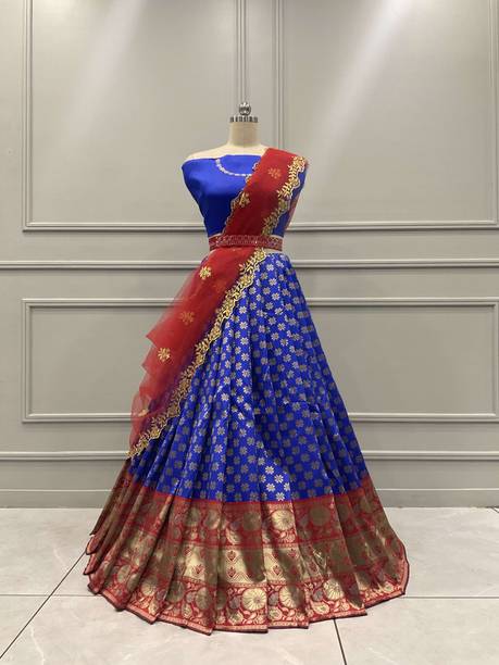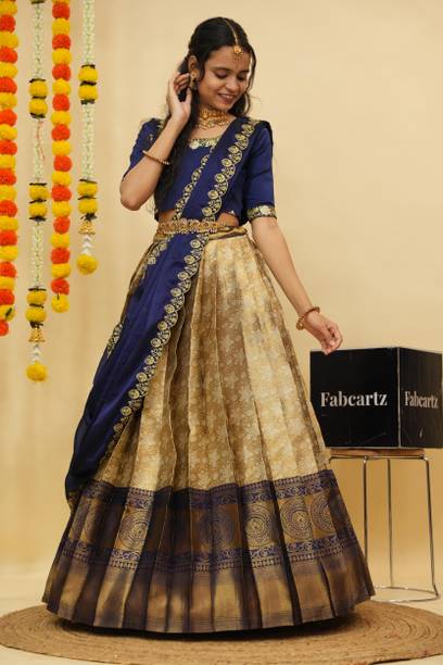 Party Wear Half sarees are a version of the traditional Indian sarees and are prominent in the South of India. Half saree designs are mainly called so because of the contrasting color of one half of the saree as compared to the other half. Half sarees allow for bold color combinations and various designs. Because of the rising popularity of wearing half sarees at different Indian functions, designers have now begun to add different elements to it as well as western ideals.