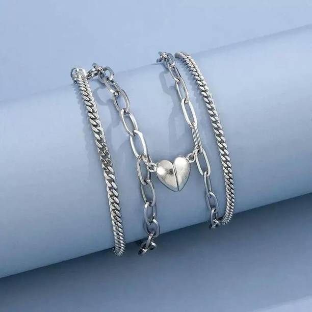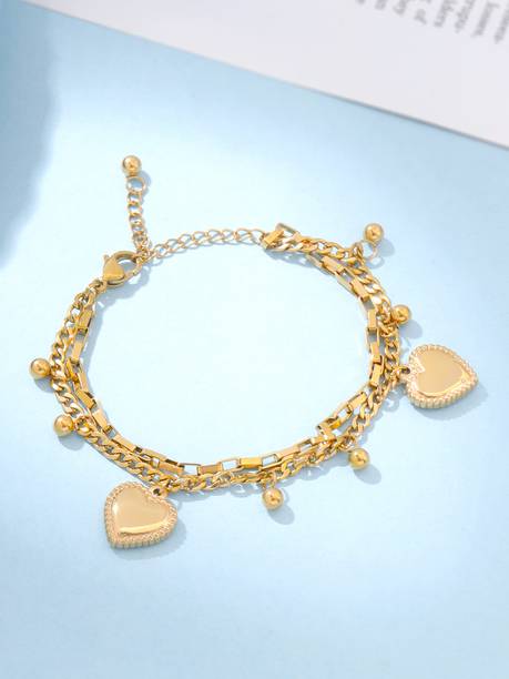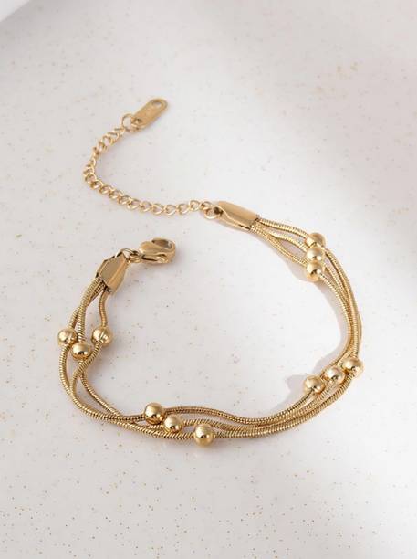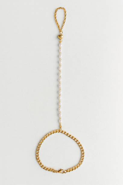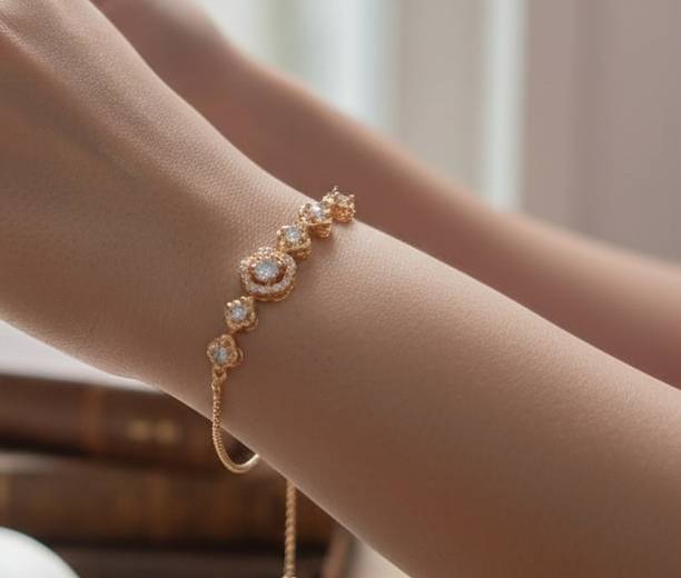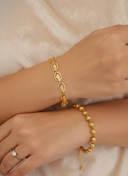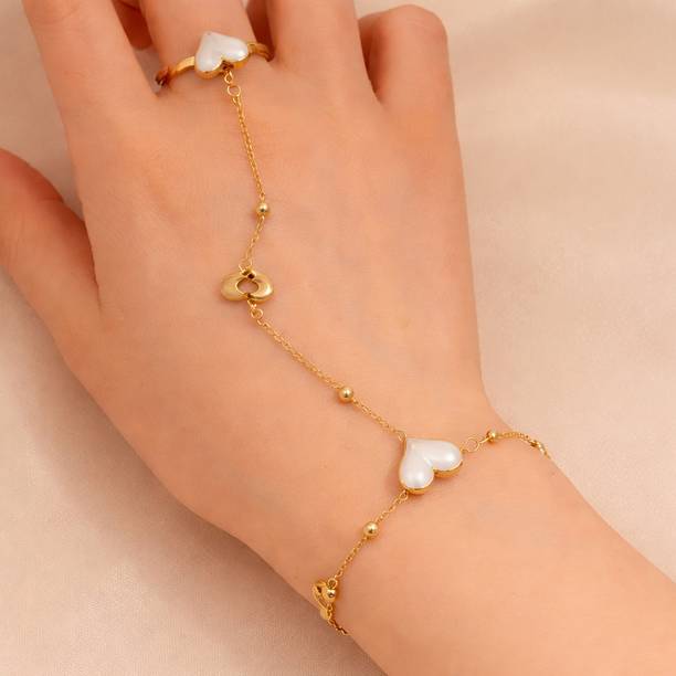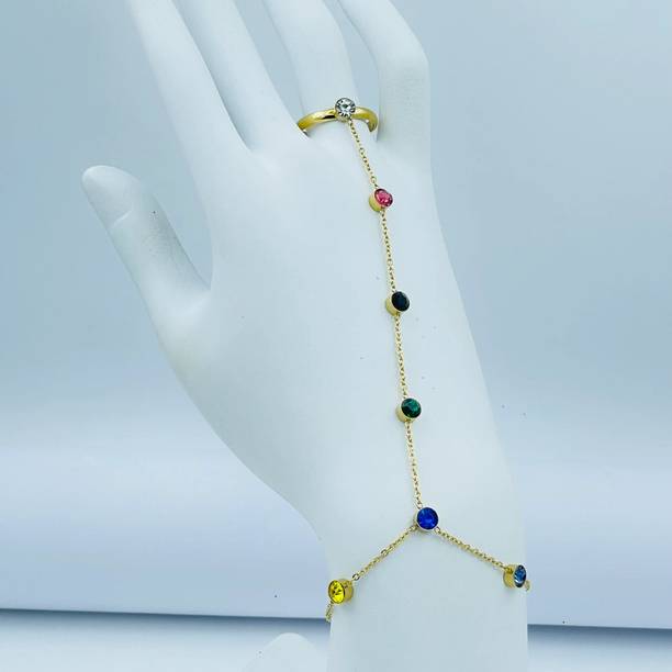 Our selection of hand chain bracelets for women online includes umpteen styles of these accessoires. Check out alloy ring bracelets which are thick around the wrist, making them statement accessories. Chain bracelets with dainty beads arranged one after the other look elegant and are bound to bring out the femininity of your wrists.