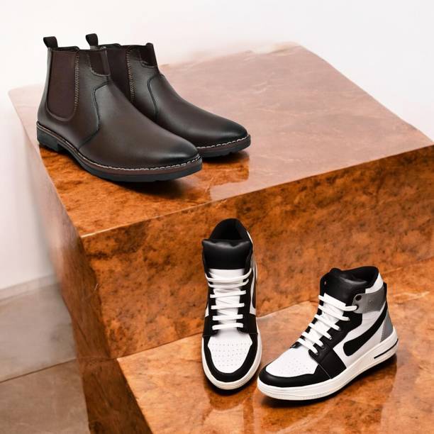 Some of the brands offering men’s high ankle shoes are Benera and Footista. Benera offers high ankle boots that come in colors like black and even military shades. These are jumbo boots that have laces extending up to the ankles. Kraasa offers stylish high ankle boots that have stacked heels. You can wear yours to an office or any other formal event. Pair the high ankle boots with a crisp white shirt and formal trousers. For a more casual look, you can opt for the classic Converse high ankle shoes that come in bright colors like blue and red.