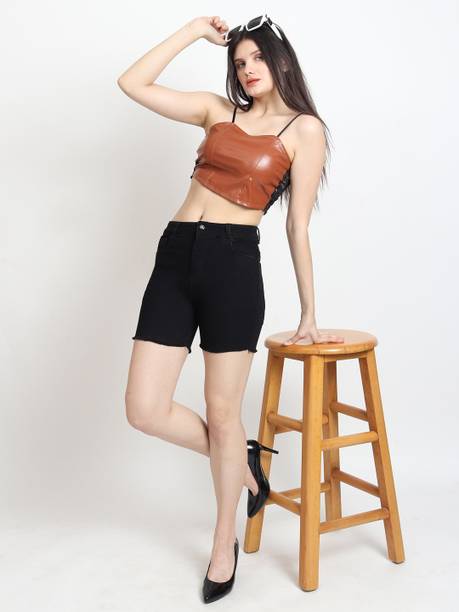 With a Crop Top: For a casual look, opt for a crop top and match it with a pair of high waisted denim shorts for women. Accessorise it with a pair of flats or sneakers. This is a classic casual look which can never go out of style. You can also accessorise it with a small-sized backpack. You can purchase a pair of high waisted denim shorts online from brands such as Aeropostale and Fck-3.