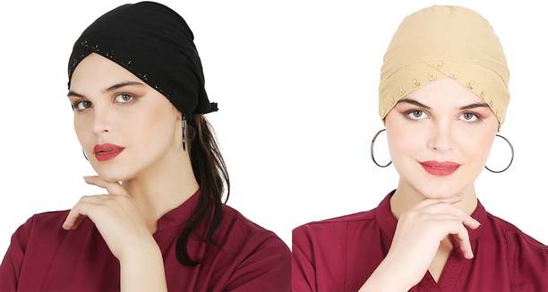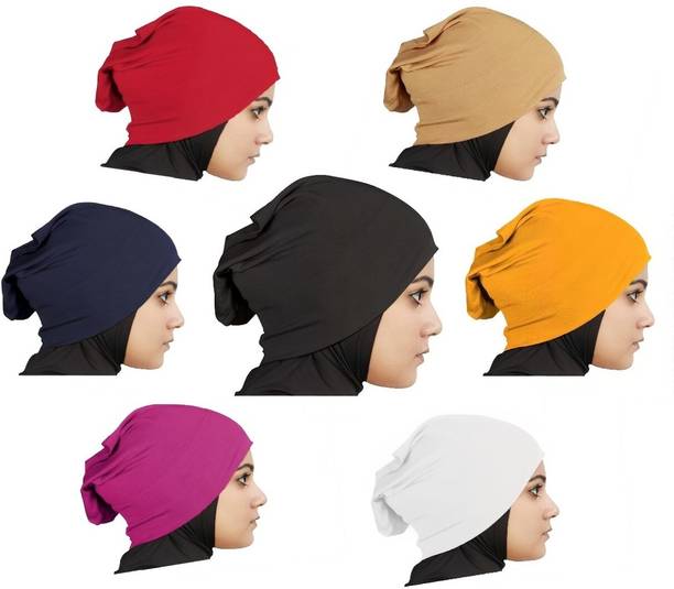 Explore hijab caps in a variety of designs, styles, fabrics, colours, and more. These hijab hats or under caps provide maximum comfort and easy wear as they keep your hijab in place and prevent it from slipping. With these under-scarf bonnets, you can carry hijab conveniently and easily throughout the day. Offering versatility to your hijab styles, these under caps not only create a stable base for your hijab but also add a layer of colour. Made with high-quality and soft fabric blends, these under caps sit on your hair comfortably. You can choose between solid caps or net caps according to your convenience. As the hair texture makes the hijab slip or fall, these under caps provide the extra layer of comfort to keep your hair neat and prevent the hijab from falling frequently. With the tie-back caps, one can adjust the desired tightness of the cap to get the perfect snug fit without being too loose or too tight. Being stretchy, soft, and lightweight, these under-scarf bonnets are ideal and fashionable for pairing with hijab. You can easily wear these under caps in less time and tie them back with the two attached straps provided for a snug fit. Shop hijab caps online from brands like EnviUs, Cwen Collection, Monati, Hejabiya, TCP, and more.