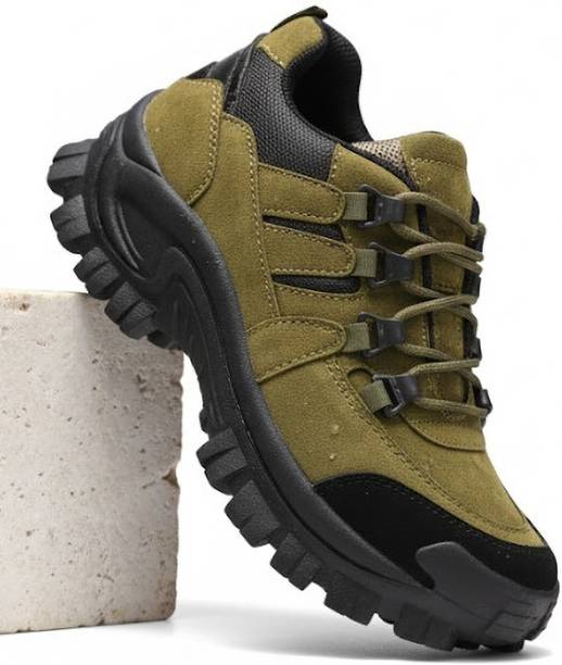 Hiking boots for men are an absolute essential when it comes to trekking on uneven mountainous surfaces. The strong yet comfortable boots provide the right type of insulation when it comes to rough terrains. The cushioning available within the boots protects against rough movements at all times when hiking. Check out the variety of trekking boots available online and select a suitable pair for yourself. The soft insoles and tough outer material make the boots very handy and durable in all seasons and weather conditions. Utilize your boots to their full potential and take pleasure in every trekking adventure with ease and foot safety. There are boots made from genuine leather materials like Napa that can last for many years when maintained well after every use. Some boots are crafted from fabric or synthetic material that is also durable and washable. The soles are made from PU, rubber or air mix that is hardy and can withstand pressure. Check the closure type available in the boots before adding the product to the shopping cart online. A lace-up type of closure or a slip-on pattern is available in the boots. Buy hiking boots for men online from brands such as Para Wing, Louis Stitch, Real Blue, Freacksters, Armed Force, etc. Order them and enjoy a comfortable hiking experience.