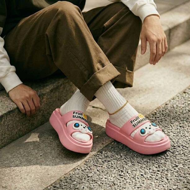 The best way to keep your feet cozy when your indoors is by getting a pair of comfortable slippers. You can either wear fluffy mules or slip-ons in your home. You can buy a perfect pair of home slippers for women by logging in to Flipkart. Check out a wide range of women’s home slippers that are offered by brands such as Doctor Extra Soft, Sparx, Brauch, Yashasvi, Drunken, BlackCoal, and many more. Ladies slippers come in different types, like flip-flops, slides, and slippers. You can also check out a myriad of bedroom slippers, bathroom slippers, plush slippers, leather slippers, and rubber slippers online. Pamper your feet in the best possible way by slipping into fluffy mules or plush slippers. These comfortable pair of bedroom slippers are sure to be your all-time favorite footwear! Since you don't want to skid or trip while walking around the house, it is recommended to pick footwear with rubber soles or slip-resistant soles. Log in to Flipkart and buy home slippers online in an easy and convenient way. Choose a design and color according to your sense of style and taste. Price list last updated on {DATE}.