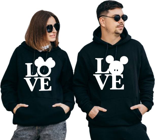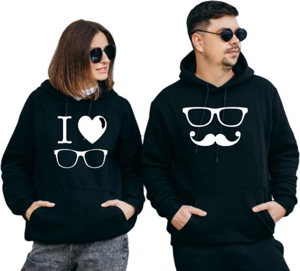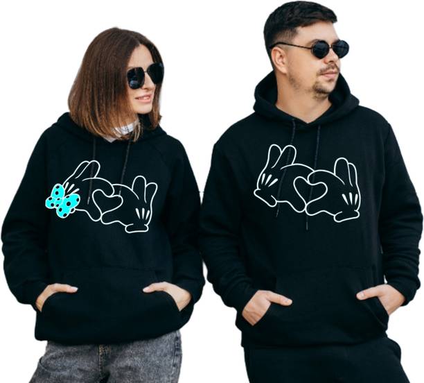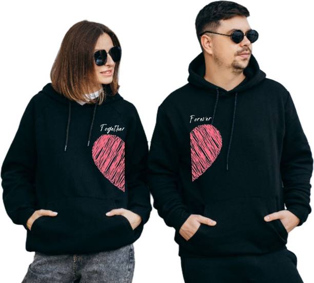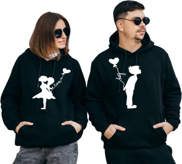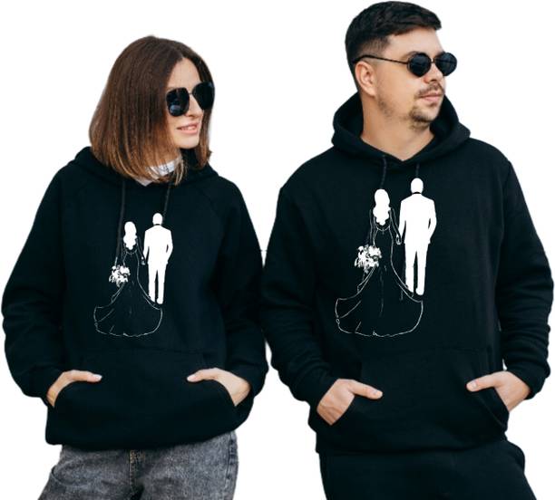 Couple Full Sleeve Printed Hooded Sweatshirt