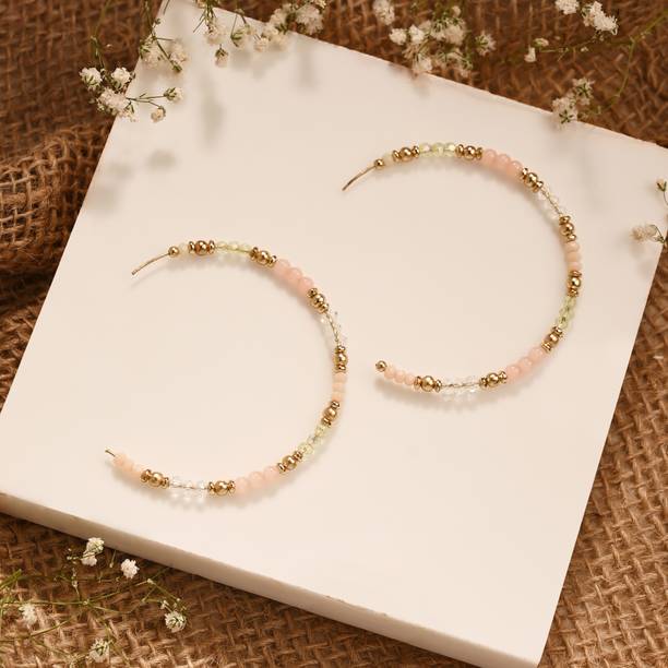 Are you looking for fashionable earrings that suit various outfits? If yes, hoop earrings can be a suitable option for you. They can be versatile pieces of jewellery that add elegance to various styles. While searching, you can find them in a variety of materials, like acrylic, brass, acrylic, aluminium, plastic, and a lot more, catering to diverse personal preferences. The elegance of hoops lies in their varied designs, which make them suitable for diverse age groups to wear on various occasions. You can choose from multiple trendy themes, such as chunky hoops, heart-shaped designs, oversized studs, and others. The circular shape of these accessories ensures their timeless style. Moreover, these products can be compatible with several contemporary and ethnic outfits. They also feature various closure types, like hinged snap, lever-back, and hook closures, to provide security and ease of wear. Some of the latest earrings feature a variety of gemstones, such as amethyst, aquamarine, emerald, pearls, and jade, adding a touch of sophistication. These can offer you an effortless expression of your style and personality. You can find these hoops from brands like Vembley, Dressberry, Zoey, Jewels Galaxy, YouBella, and more. Through online shopping, one can find multiple brands providing combo pairs of these earrings at different price ranges. So, buy your best-suited hoop earrings online and enjoy hassle-free doorstep delivery.
