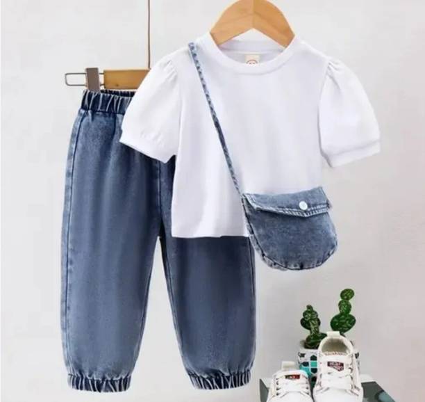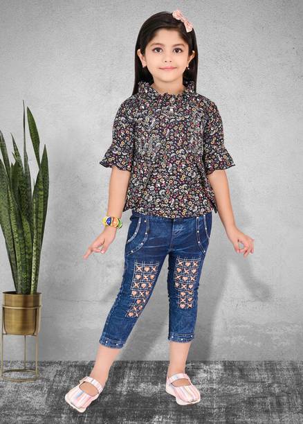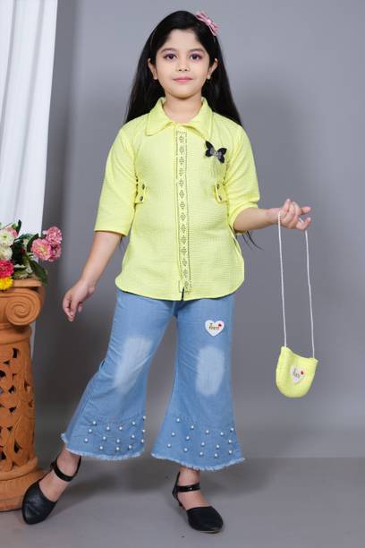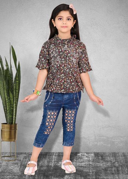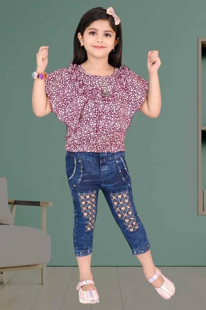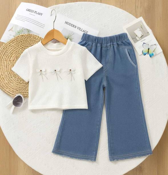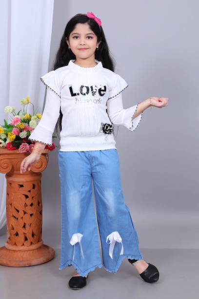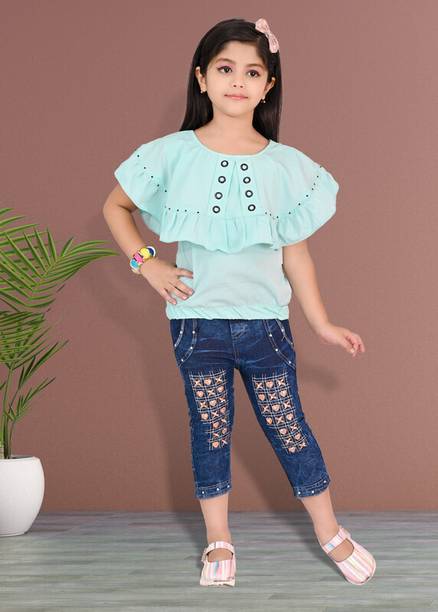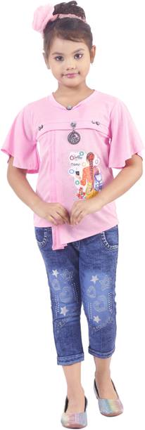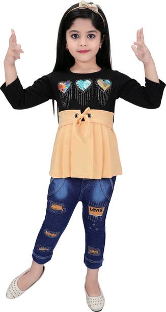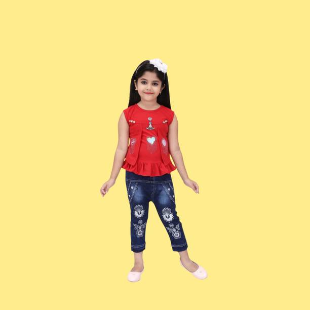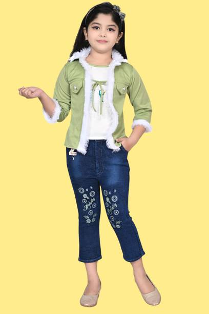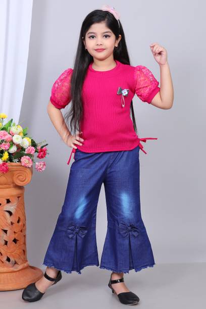 MANJURALA Baby Girls Party(Festive) Top Jeans