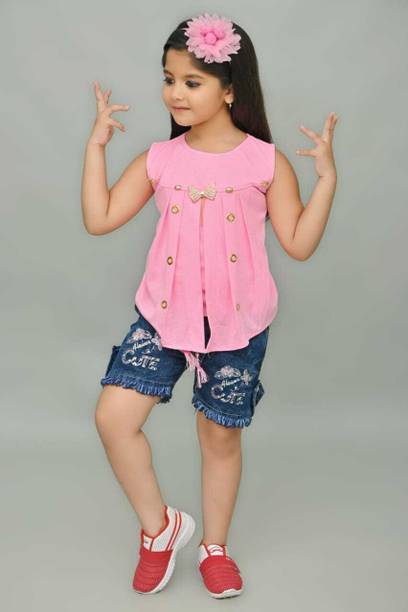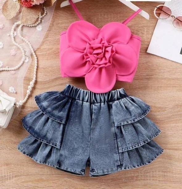Aazzeen fashion Baby Girls Party(Festive) Top Shorts
