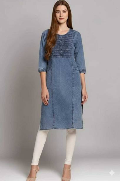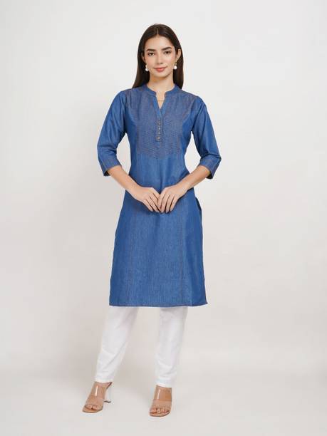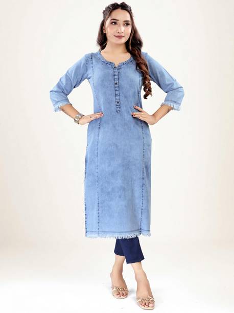 Look dashing in jeans kurtas now available online. These are ideal daily wear for men and women who love to dress in style. You can check out the latest jeans kurta collection and effortlessly pair them with trousers, three-quarters, Patialas, tights, jeans, pants, etc. These Indo-western garments go great as festive wear, casual day out, religious ceremonies, semi-formals, etc. There is always a unique style for everyone when you are checking out these kurtas online. Choose from a-line, flared, asymmetric, cape tops, trail cuts, and many other types of looks that can make heads turn. These kurtas are available in sizes, colours, and lengths. You can find them in solid, printed, hooded, stone wash and other varieties. You can also check out various sleeve options like full sleeves, rolled-up sleeves, short-sleeves, and three-fourth sleeves. You can shop individually or buy in packs. Make sure you check out the reviews and compare the prices to make an informed decision. Browse through the wide range and pick your favourite jeans kurtas. Check out popular brands like DM MART, Rangmanch by PANTALOONS, Pepe Jeans, raabi, etc., and place your order today. The information you are reading has been last updated on 25-Feb-26.