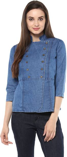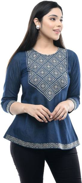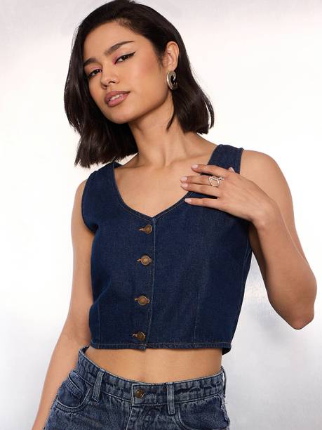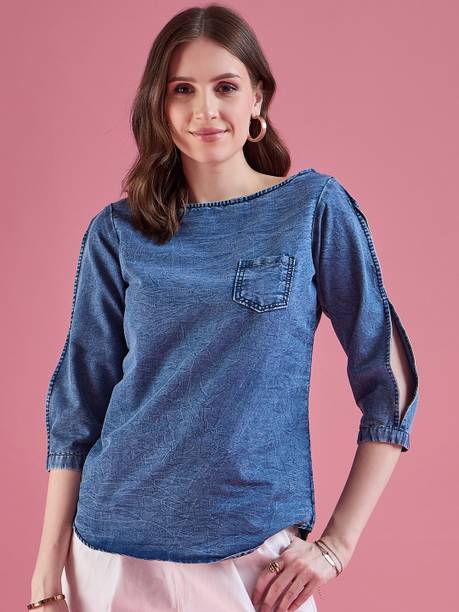 Having classic jeans tops in your wardrobe can give you an ideal outfit for various occasions in no time! With their casual vibe and relaxed feel, these tops can be a go-to choice. They are breathable and can keep you feeling fresh and looking stylish. You can explore herringbone, paisley, ombre, embossed, geometric print, and lace motifs that adorn the tops, allowing you to choose as per your preference. These denim tops are best suited for those seeking comfy and chic styles for any weather—spring, summer, or fall. Moreover, you can choose from soft, comfortable, and durable fabrics like net, acrylic, cotton, linen, nylon, and silk. These are available at varied prices and offers. Find your preferred fits from options including oversized, relaxed, slim, and regular. Additionally, the latest patterns, including herringbone, paisley, ombre, embossed, lace, and geometric print, are available for you to choose from as per your preference. You can style these versatile tops with different bottom wears, including denims of various colours, skirts, shorts, and more. Furthermore, denim can be worn continuously for a very long time without degrading the looks of the clothing so you can enjoy looking effortlessly trendy for a long time. So buy jeans tops online for a quick morning dress-up or for a cosy evening vibe with friends.