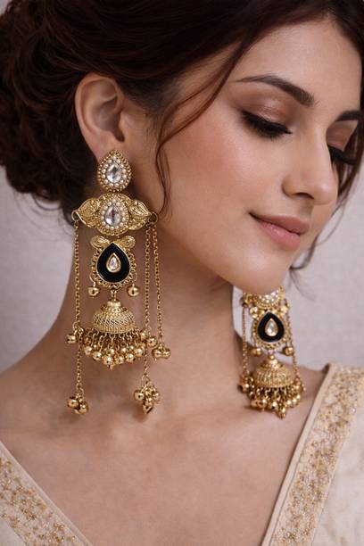 Add timeless charm to your jewellery collection with jhumkas. They can take your fashion game to a whole new level. Select designs that offer you elegance and flair. You can pair them with ethnic ensembles like sarees and lehengas , or experiment by wearing them with tops and tees . Their graceful designs and intricate patterns help you make a statement wherever you go. Brands that sell contemporary and antique jhumkas online on Flipkart are Rubans, Brado Jewellery, Yellow Chimes, GIVA, Priyaasi, and others. You can find these earrings in different materials and sizes. They often feature various geometric patterns and colourful stones. These earrings can effortlessly transition from festive occasions to daily wear. If you are into a minimalistic vibe, consider various small jhumka designs for yourself. These ornaments can be worn with different necklaces , allowing you to create dynamic looks. Buy jhumkas of your choice online on Flipkart and express your unique style.