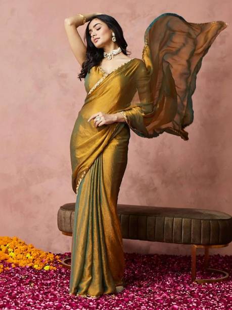 ethnic wear collection, you can have a look at the Jimmy Choo sarees. These sarees have a luxurious finish that can amp up your glamour quotient. They are made of quality fabrics and fabric blends, offering a unique combo of shine and sheerness. The