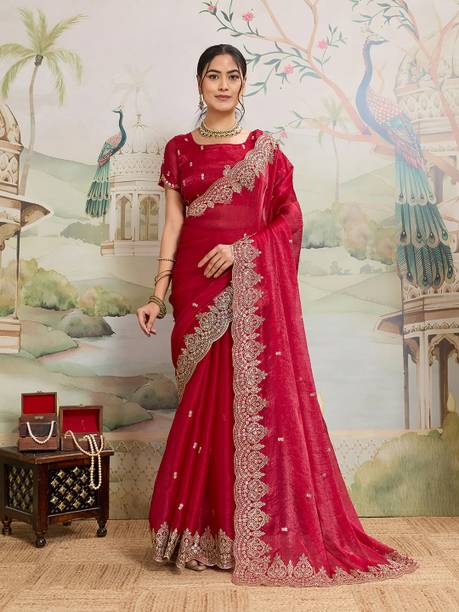 Fabric: Made from silk, satin, organza, georgette, and more, the sarees offer a classy look while ensuring a flawless drape.