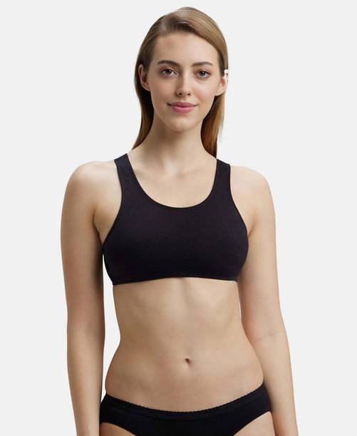 Jockey sports bras have been popular among women who love to wear something comfortable during their fitness routine. Keep yourself snug and flexible in these latest Jockey sports bras available in different designs, versatile patterns, colours, and sizes. Keep your comfort your priority by choosing from the airy and breathable fabrics like cotton blend, lycra blend, poly cotton, spandex, net, cotton silk, elastic, hosiery, etc. These can keep you sweat-free and snug in various wide back strap designs like backless, styled back, racerback, low back, and regular cut. These bras are also known for their wider and broader straps on the underbust, making them comfortable and airy to wear during workouts. Depending on your need, you can go for full coverage, medium coverage, or half coverage bras. While some are available with underwire, the rest are wireless for women who prefer comfortable sports bras. You can choose from colourblock, geometric print, self-designed, and solid patterns to go with your workout bottoms. You can also wear these with your regular ethnic, western, fusion, and loungewear. You can get these in purple, orange, blue, red, white, black, maroon, and many other shades. So if you wish to buy some great sportswear, order Jockey sports bras online. The information you are reading has been last updated on 30-Apr-26.