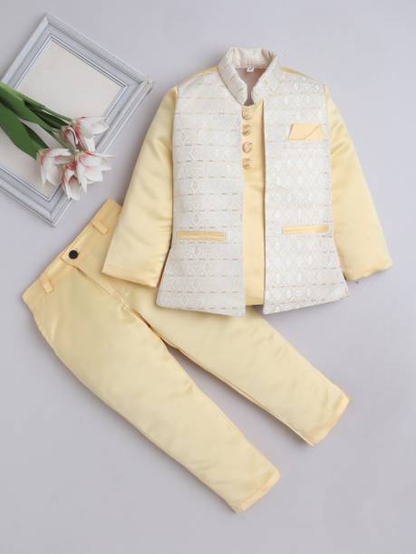 A classic bandhgala or an elegant Jodhpuri suit for weddings makes a royal impression. The origin of this classic style can be traced back to the princely state of Rajasthan and consists of a jacket in rich fabric and tailored trousers. The high collared coat is worn with a shirt, a vest, or a short kurta. Pair it with Jodhpuri shoes, colourful headgear or safa, and complementing jewellery to complete the looks. Choose a rich-looking Jodhpuri suit for wedding ceremonies or for a reception for the groom and match the colours with the brides’ lehenga for picture-perfect moments. You can also opt for matching dresses for the wedding party to build a theme. These classic suits are available in a wide range of colours, styles, designs, and fits. You can opt for rich fabrics like silk and silk blends, jacquard, cotton blends, linen, and more. Browse and select the latest Jodhpuri suit for wedding from brands such as SG LEMAN, Arshia Fashions, JTC, RISANI, VASTRAMAY, and many more. Shop online and avail benefits like a wide range of options to select from, multiple modes of payment, and convenient doorstep delivery. The information you are reading has been last updated on 05-Mar-26.