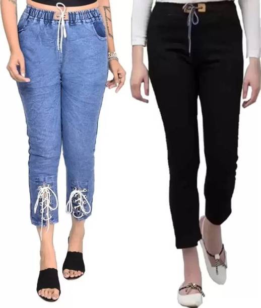 Joggers for girls are the perfect blend of fashion and comfort. They let you pull off a casual and sporty look without much effort. The stretchy cuffed pants give off a chic vibe and are lightweight and body-hugging. You can wear them while running errands, during workout sessions, lounging at home, or while hanging out with friends on the weekend. Joggers for girls are available online in different colours, sizes, and themes. Browse and choose from colours like grey, red, dark blue, maroon, light green, cream, beige, and so on. Team up your track pants with a denim jacket and graphic printed T-shirt for a casual look, or pair them with a blazer and comfortable heels to create a semi-formal look. They can be worn with sneakers, boots, or heels, as per your preference. The athleisure wear is available in various fittings, such as slim, flared, skinny, regular, relaxed, and more. You can refer to the size chart to find jogging pants that suit your requirements. Joggers are made from a variety of materials, including fleece mix, cotton jersey, hosiery, satin, stretchable cotton, denim blend, viscose rayon, and more. Brands like CK Collection Influent, Kifayati Bazar, QuickWardrobe, Mumsy, Nios Fashion, and more offer tracksuit bottoms online.