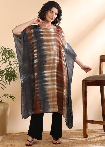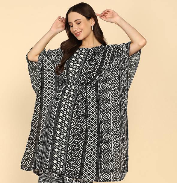Get ready to dazzle fashionably with the stunning collection of kaftans. Crafted from luxurious silk blends, hosiery, chiffon, crepe, or net fabrics, these garments give a comfortable and elegant fit for any occasion. Choose from various captivating themes, including vibrant florals, retro florals, solid crop tops, vintage lace, and bohemian designs. With their classic, loosely-fitted style, and extended sleeves, these dresses, kurtas, and tops are best suited for casual wear, home wear, and even relaxed wear. You can even find dressy options with embellishments, embroidery, lace, tassels, and other ornate detailing that make them suitable for special occasions. The collection offers various patterns that range from solid and embroidered to printed and striped at varied prices. It also has options with floral prints. Whether attending a party or enjoying a casual day out, these latest pieces of dresses and tops are suitable for all festive gatherings and weddings. Browse through the trendy collections by Tokyo Talkies, Vero Moda, Fabnest, Fashion Buzz, Sew You Soon and more. Buy kaftans online, pay with convenient modes, and get them delivered to your doorstep in a hassle-free experience. Embrace the charm of a relaxed style with these new additions to your wardrobe.