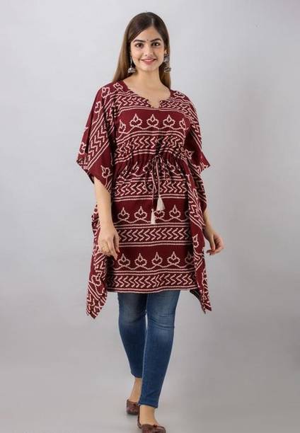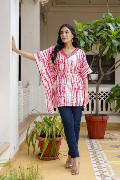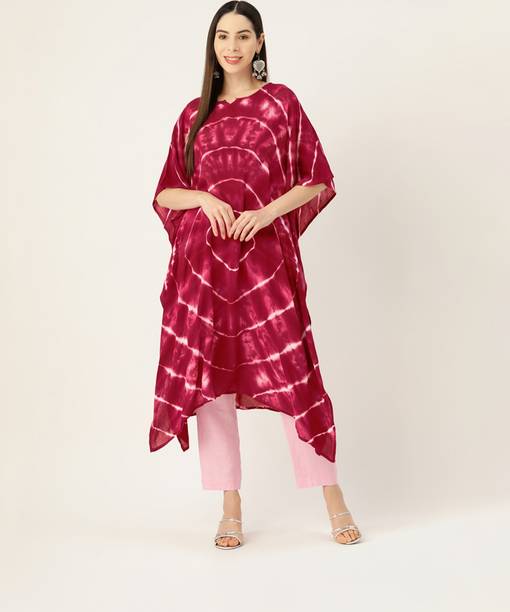 Get ready to dazzle fashionably with the stunning collection of kaftans. Crafted from luxurious silk blends, hosiery, chiffon, crepe, or net fabrics, these garments give a comfortable and elegant fit for any occasion. Choose from various captivating themes, including vibrant florals, retro florals, solid crop tops, vintage lace, and bohemian designs. With their classic, loosely-fitted style, and extended sleeves, these dresses, kurtas, and tops are best suited for casual wear, home wear, and even relaxed wear. You can even find dressy options with embellishments, embroidery, lace, tassels, and other ornate detailing that make them suitable for special occasions. The collection offers various patterns that range from solid and embroidered to printed and striped at varied prices. It also has options with floral prints. Whether attending a party or enjoying a casual day out, these latest pieces of dresses and tops are suitable for all festive gatherings and weddings. Browse through the trendy collections by Tokyo Talkies, Vero Moda, Fabnest, Fashion Buzz, Sew You Soon and more. Buy kaftans online, pay with convenient modes, and get them delivered to your doorstep in a hassle-free experience. Embrace the charm of a relaxed style with these new additions to your wardrobe.