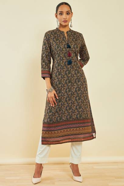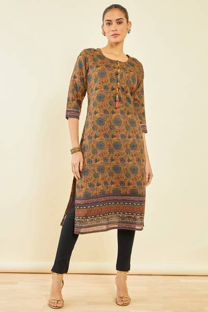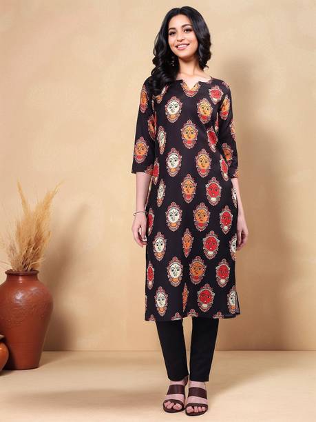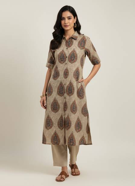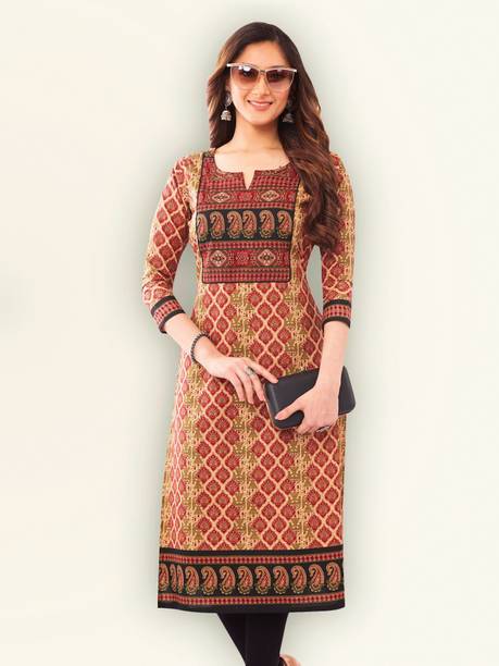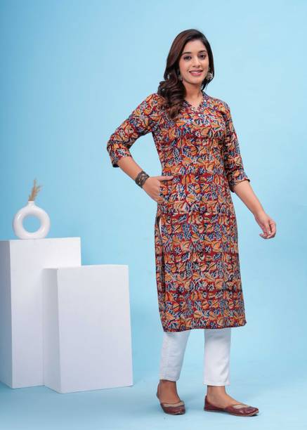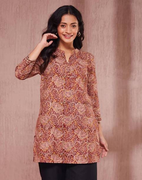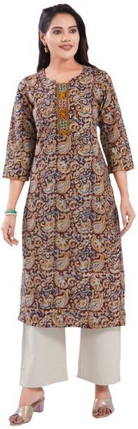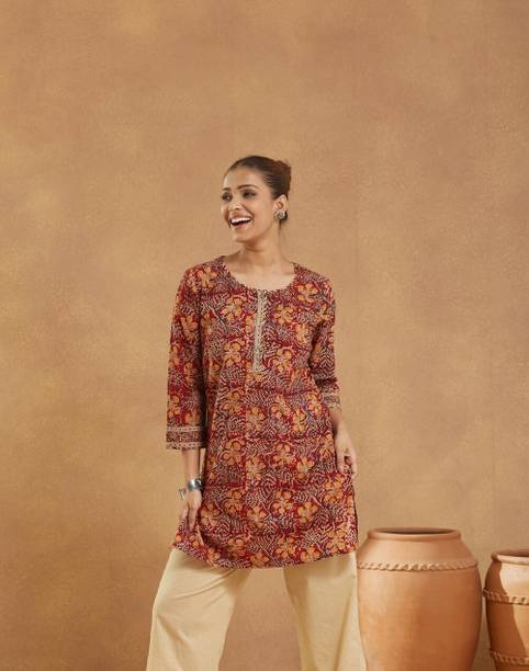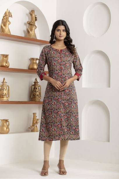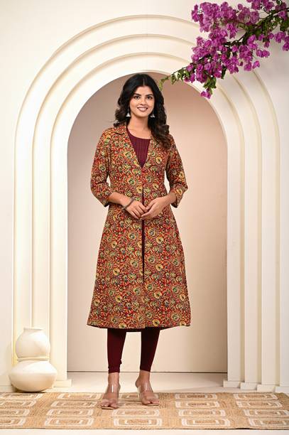 Kalamkari kurtis are available in both vibrant and subtle designs to meet your requirements. Featuring a delightful Kalamkari print, this women’s apparel comes with an attractive pattern that can help you flaunt your unique style. This garment can add a classy touch to your ethnic wardrobe. Moreover, the intricate design and rich hues of Kalamkari art make this kurta a statement piece for many occasions. You can find this women's garment in different neck and sleeve designs to match your style needs. Search for kurtis that act as a versatile wardrobe essential, suitable for casual occasions and everyday wear. So, irrespective of whether you are running errands or attending a family gathering, this garment offers effortless style and comfort for any setting. To complete your look, pair this ethnic apparel with leggings or palazzos. From multiple Kalamkari apparel available online, select pieces that match your fashion and style them your way.