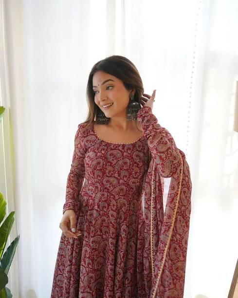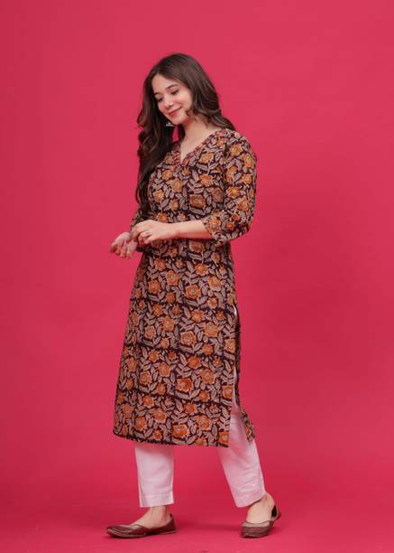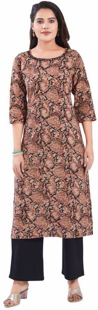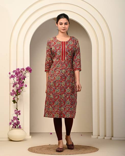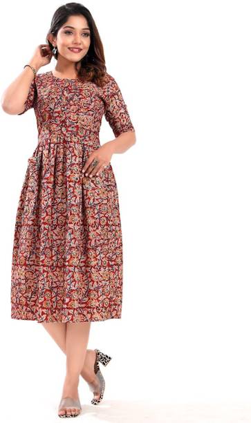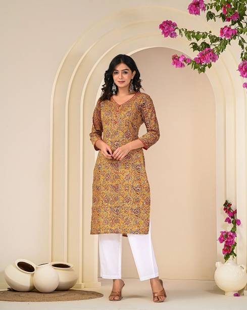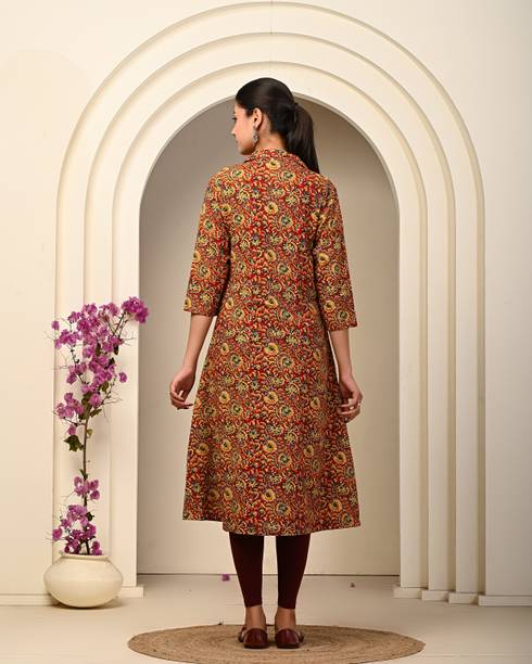 4U Fashion, Agamyastores, Akiko, and others. Search for pieces that feature a fusion of vintage patterns and contemporary silhouettes. Garments that contain elaborate Kalamkari embroidery can level up your style game in no time. You can find this apparel with asymmetrical hemlines, cold shoulder details, and layered designs. Keep this garment handy, as it is ideal for both a formal wedding and a day spent lounging with friends. It is an ideal option for women who care about their appearance and want to maintain cultural ties while embracing contemporary fashion. This garment comes with a distinctive blend of heritage and unique style. It also ensures comfort and timeless appeal. You can search for apparel made of a breathable cotton fabric. They are available in an array of designs and prints, from the simplest to the most complex, making them ideal for any celebration. The Kalamkari design includes a variety of exquisite designs that highlight the beauty of Indian art, from peacock feathers to lotus blossoms. They're a must-have for any closet because of their luxurious fabric, detailed patterns, and classic style.
