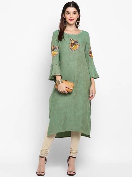 Kalamkari kurtis are available in both vibrant and subtle designs to meet your requirements. Featuring a delightful Kalamkari print, this women’s apparel comes with an attractive pattern that can help you flaunt your unique style. This garment can add a classy touch to your ethnic wardrobe. Moreover, the intricate design and rich hues of Kalamkari art make this kurta a statement piece for many occasions. You can find this women's garment in different neck and sleeve designs to match your style needs. Search for kurtis that act as a versatile wardrobe essential, suitable for casual occasions and everyday wear. So, irrespective of whether you are running errands or attending a family gathering, this garment offers effortless style and comfort for any setting. To complete your look, pair this ethnic apparel with leggings or palazzos. From multiple Kalamkari apparel available online, select pieces that match your fashion and style them your way.