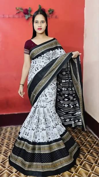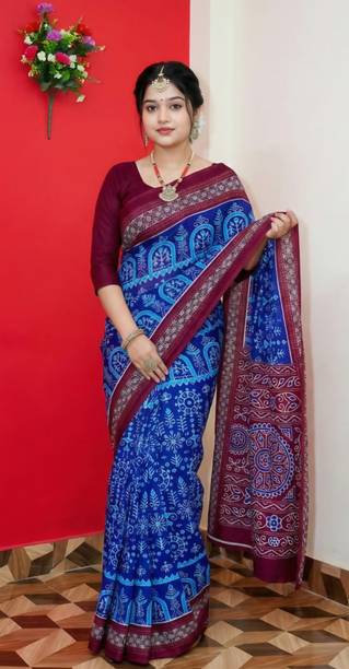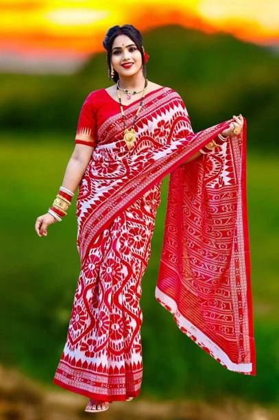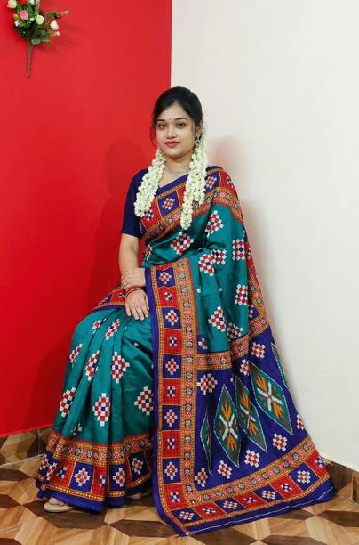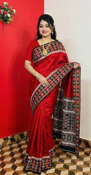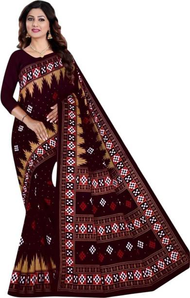 Printed, Geometric Print, Woven, Temple Border Sambalpu...