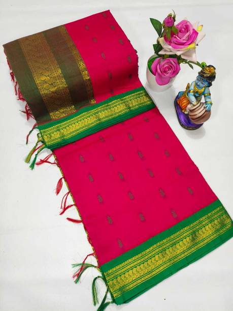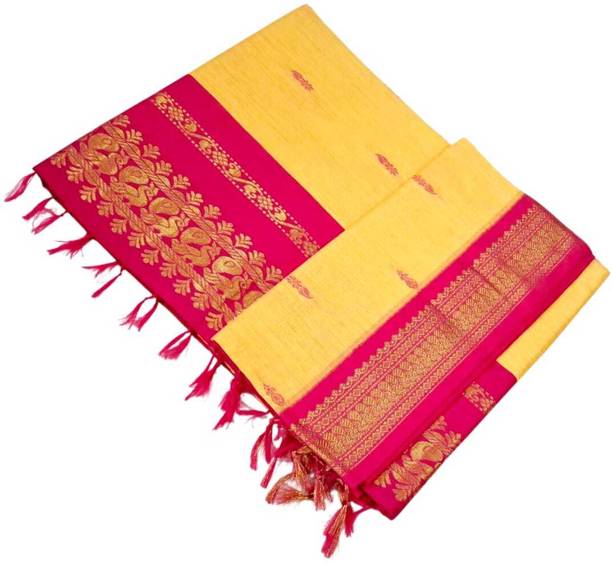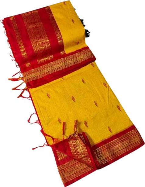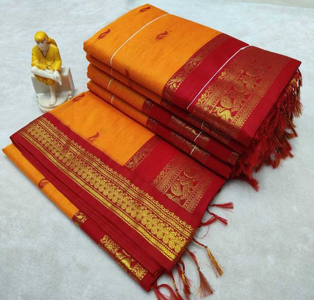 Printed, Woven, Floral Print Kanjivaram Pure Cotton Sar...