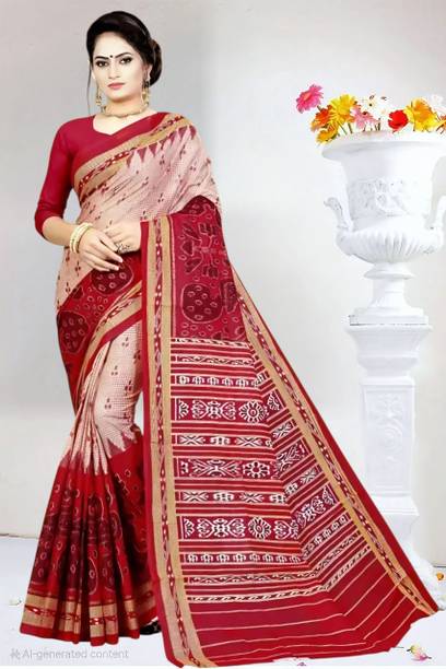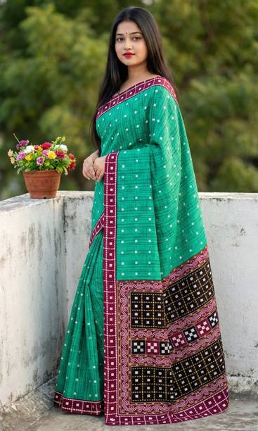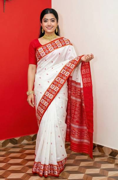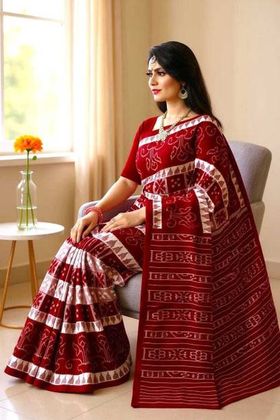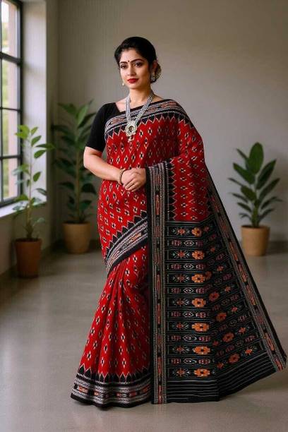 Geometric Print, Woven Sambalpuri Pure Cotton Saree
