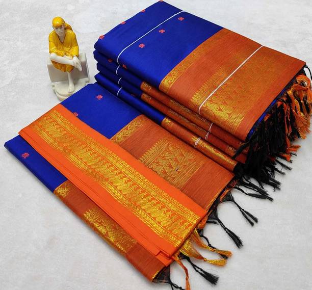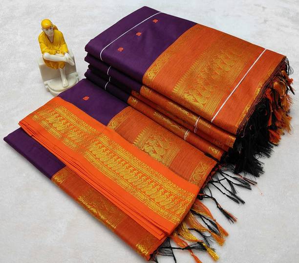 Woven, Striped Kanjivaram Pure Cotton Saree