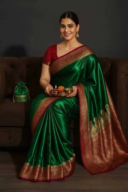 The history of Kanchipuram sarees is as rich as its golden borders and silky texture. Originating from Kanchipuram village in the southern part of the Indian subcontinent, it is handwoven by weavers of Tamil Nadu with high-quality mulberry silk. It has a legacy of over 150 years which started with the migration of silk weavers from Andhra Pradesh in the 15th century. These are commonly known as Kanjivaram sarees and are a popular choice for weddings or similar occasions. It takes three artisans and 10 to 20 days to make one authentic Kanjivaram saree. The artwork on these sarees can range from simple dots to elaborate depictions of temples and mythological anecdotes. Kanchipuram silk is ranked as one of the most popular silks in the world with very few competitors. Its fabric strength and exquisite designs make Kanchipuram sarees collectibles passed on from one generation to another. It's become more convenient to get your hands on these traditional sarees with their presence in the online shopping space. You no longer have to travel all the way to Kanchipuram to buy these sarees. Instead, from the comfort of your home, browse through hundreds of designs in golden thread work and contrasting colours before buying your Kanchipuram saree online from brands like Aksaa, Sangam Prints, The Chennai Silks, Dakshin Grandeur, and Ratnavati. The information you are reading has been last updated on 10-Mar-26.