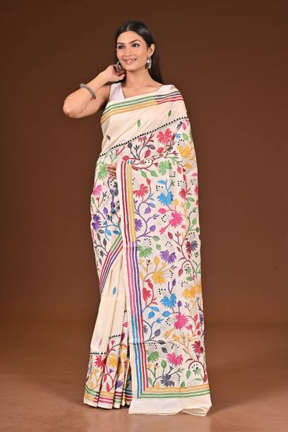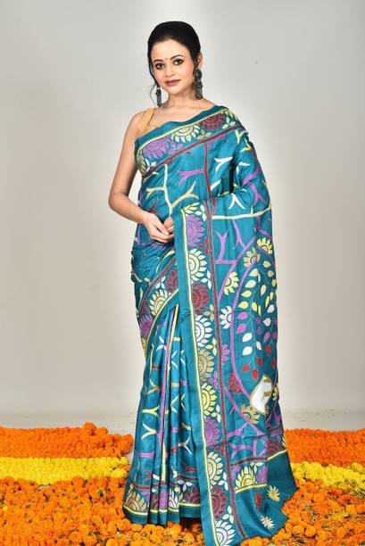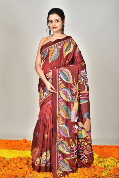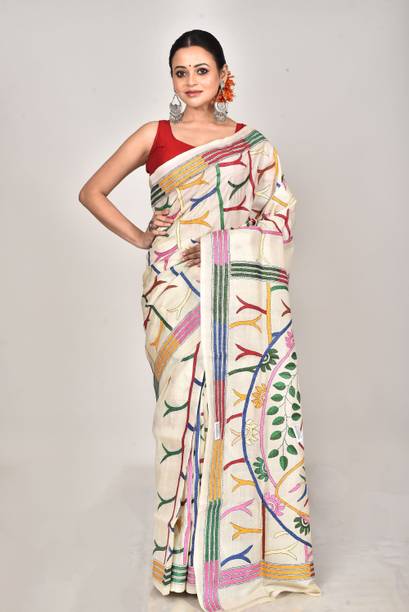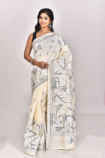 Amp up your look with these gorgeous Kantha embroidery sarees. These traditional sarees are popular for their unique and elegant embroidery. Worn for all occasions and in all kinds of weather, these Kantha sarees are available in various fabrics like pure silk, tussar silk, cotton, and more. These sarees not only look glamorous but are also comfortable to wear. The motifs found on Kantha sarees is one more feature that makes this weave unique. Choose from beautiful handwoven motifs, like simple geometrical shapes, flora and fauna, scenes from everyday life, mythological themes, and folklore. Kantha embroidery sarees are available in various colours, and you can choose from subtle shades and vivid hues according to the occasion and your preferences. You can check out the latest Kantha embroidery saree collection online and choose from several popular brands. Some of the popular brands offering these sarees are SEASON FAB, Crochetin, AAHELEE, ada, Chhabra 555, and more. Crafted with love, these drapes are ideal gifting options. You can gift these sarees to your loved ones on special occasions. Place an order online and add a piece of the Indian tradition to your wardrobe. The information you are reading has been last updated on 21-Feb-26.