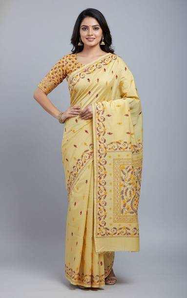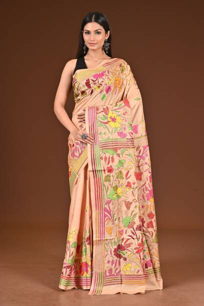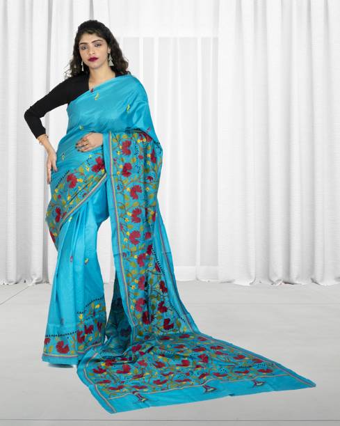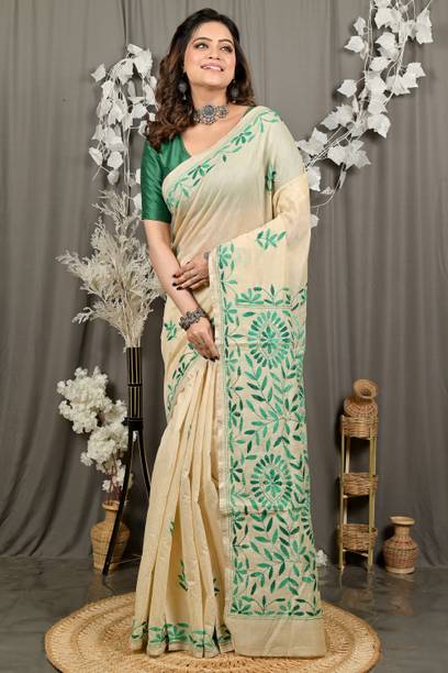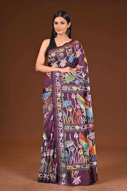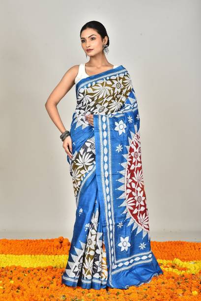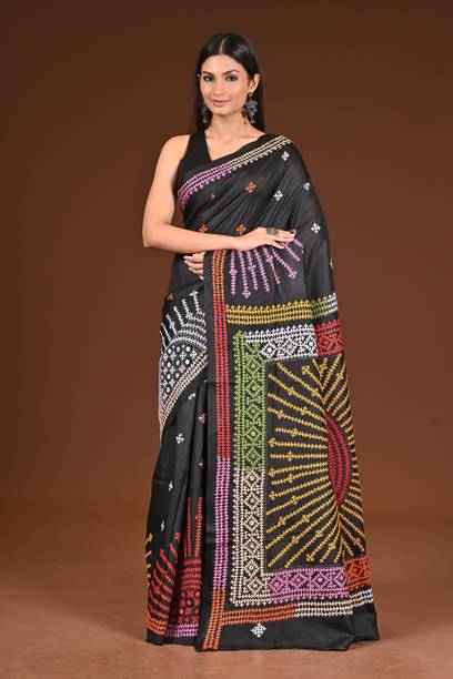 Your search for a classic ethnic wear option ends with the beautiful Kantha stitch saree. It is a traditional Bengali weave that is a result of skilful craftsmanship. It features gorgeous embroidery work that is delicately stitched into the fabric by skilled artisans. These designs are created using a simple and straight running stitch technique used to create the desired patterns. This results in the beautiful ethnic wear option that is loved by many women. You can wear this saree for functions, weddings, and engagements and look charming and unique. They also make for a great ethnic choice to wear to special occasions like birthdays, anniversaries, etc. You can also drape them on and pair them with the right accessories for festivals and ceremonies for a simple yet ethereal look. You can find fabric options such as pure silk, pure cotton, chiffon, and cotton blend. You can pair them up with contrasting blouses, stunning jewellery, and ethnic footwear like juttis or mojaris. You can also opt for high heeled sandals for a glam party look. You can shop these lovely sarees from brands like Bombey Velvat Fab, Fab Glorious, For And Ever, Glance Fashion, and Glamour Hub. You can buy Kantha stitch sarees online across online stores.