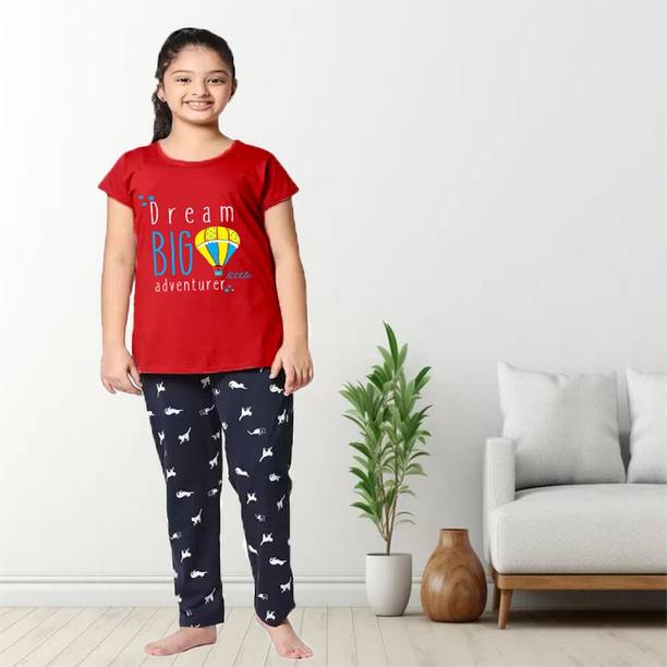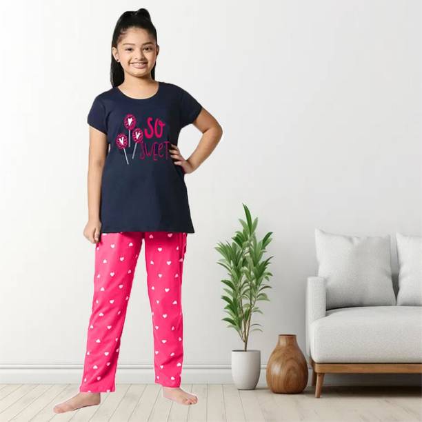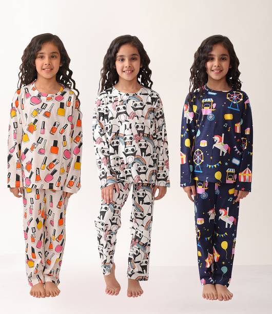Girls Graphic Print Cotton Blend Kids Nightwear
