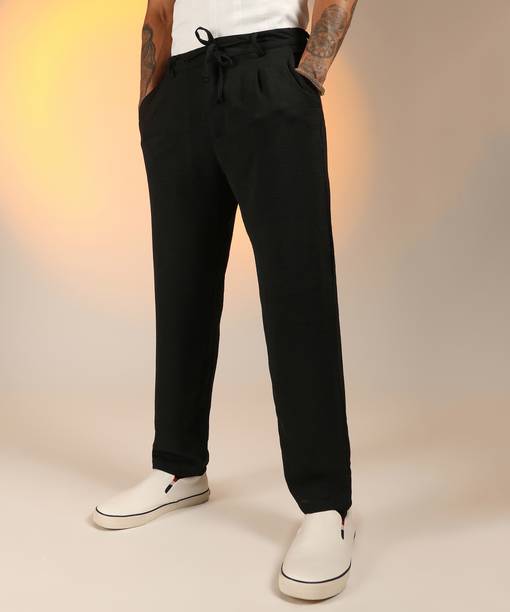 Update your wardrobe with stylish Korean pants. These pants are available in a variety of shades, so whether you prefer a subtle tone or something bold, you can find the perfect pair. Brands like Campus Sutra, V-Mart, FTX, Bewakoof, and Arrow Sport offer options with a signature baggy fit, ensuring comfort for all-day wear. The relaxed fit also allows freedom of movement. Pair them with shirts, tees, or any top of your choice for a standout look. Korean trousers often feature pleats for added style and come with different closures, including buttons and zippers, for a secure fit. Browse the collection and find your ideal pair.