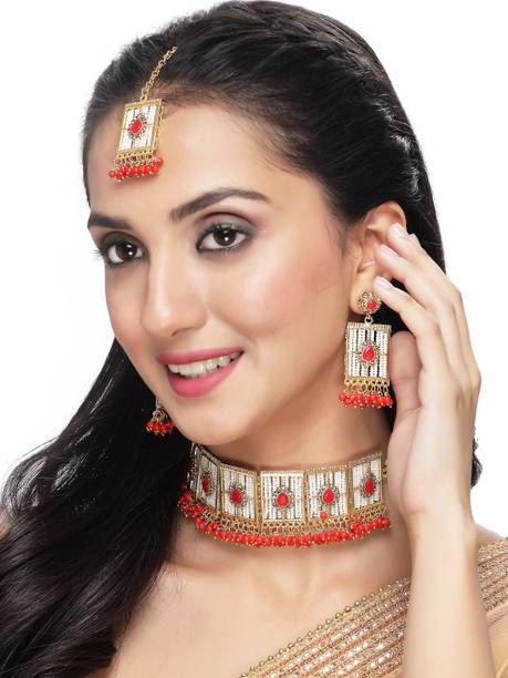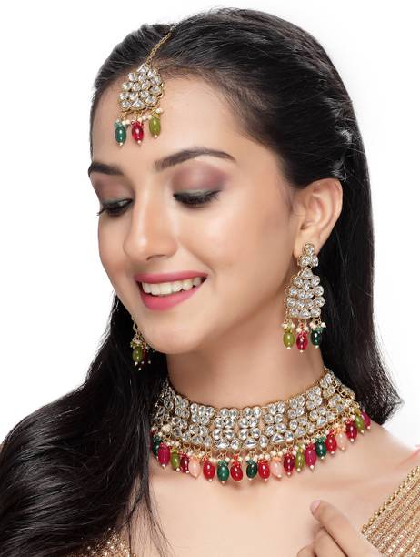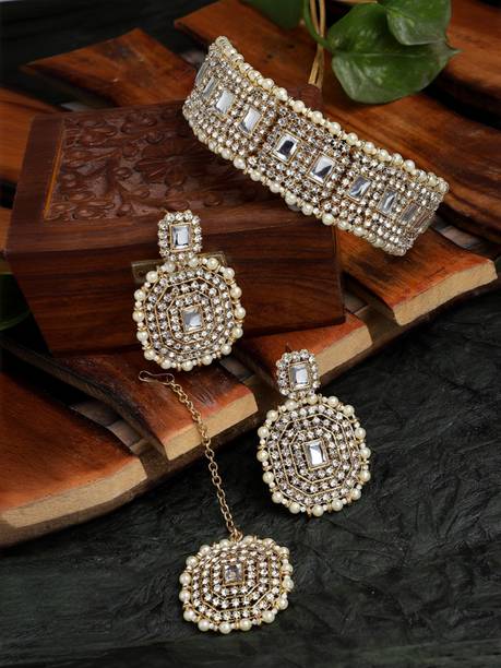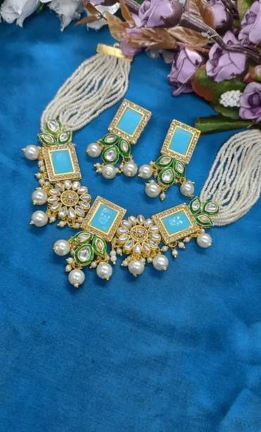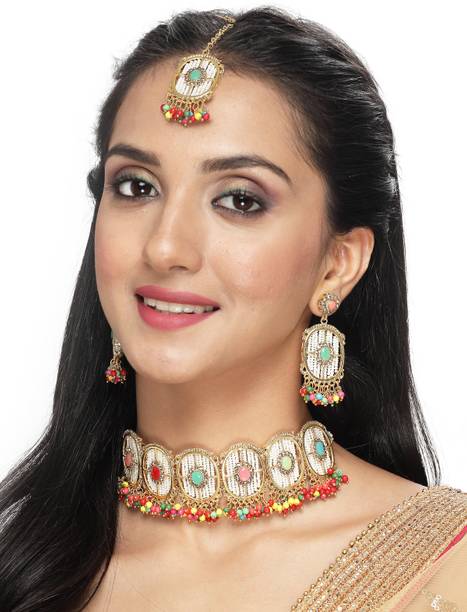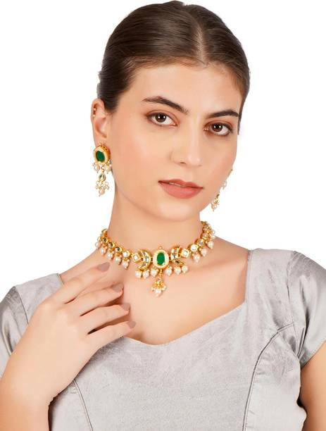 Look gorgeous with these beautiful and exquisitely crafted kundan chokers. These traditional ornaments are dazzling, gorgeous, dreamy, and perfect to wear on special occasions. Deck yourself in these latest kundan choker sets on your special day, like a family wedding or special ceremonies, religious functions, formal events, special social gatherings, and more. You can pair these up with ghagra choli sets, sarees, lehengas, palazzo and kurta sets, salwar kameez sets, Anarkalis, and other traditional apparel. These choker sets can make women look like royalty, thanks to their exquisite designs and themes like gemstone encrusted, bold and ethnic, lotus enamel jewellery, antique jewellery, traditional chokers, gold sets, and more. You can go for sturdy and comfortable materials for these chokers like bronze, stone, alloy, glass, ceramic, enamel, etc., to ensure that your showstopper look is always on point. Check out these choker sets in black, gold, blue, pink, orange, maroon, turquoise, copper, and many other shades to suit your personality. You can check out kundan chokers paired with malachite, agate, amethyst, opal, crystal, garnet, diamond, and precious or semi-precious encrusted sets that are suitable for many occasions. Check and compare options online from brands like DIYA JEWELLERY, PEORA, ASMITTA Jewellery, taransha, and SPARGZ. The information you are reading has been last updated on 20-Jan-26.