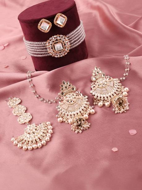 Accessorise with beautiful Kundan choker sets to make a fashion statement effortlessly. You can stand out from the crowd by adorning these intricate jewellery sets, as they offer elegance and a majestic look to your ethnic wear. These Kundan sets comprise a choker, along with other matching jewellery pieces like earrings, maang tikas, nose rings, bracelets, and more. These sets can beautifully complement any kind of ethnic attire and take your look to the next level. They can pair well with lehengas, salwar suits, and sarees, helping you create a gorgeous ethnic look to don through the wedding and festive season. Whether you are a wedding guest or a bride-to-be, these elegantly designed jewellery sets made out of beautiful Kundan gemstones can enhance the appearance of your attire. You can shop for the latest Kundan choker sets online, where you can select attractive designs and patterns from brands like Diya Jewellery, Peoria, Arbuda Art, Sandhya Designer Studio, Prime Kundan Fashion, and many more. You can also shop for Kundan sets that have various other gemstones of different colours, to find a perfect match for your outfit. Choose the designs that you like the most and buy Kundan choker sets online. The information you are reading has been last updated on 22-Feb-26.